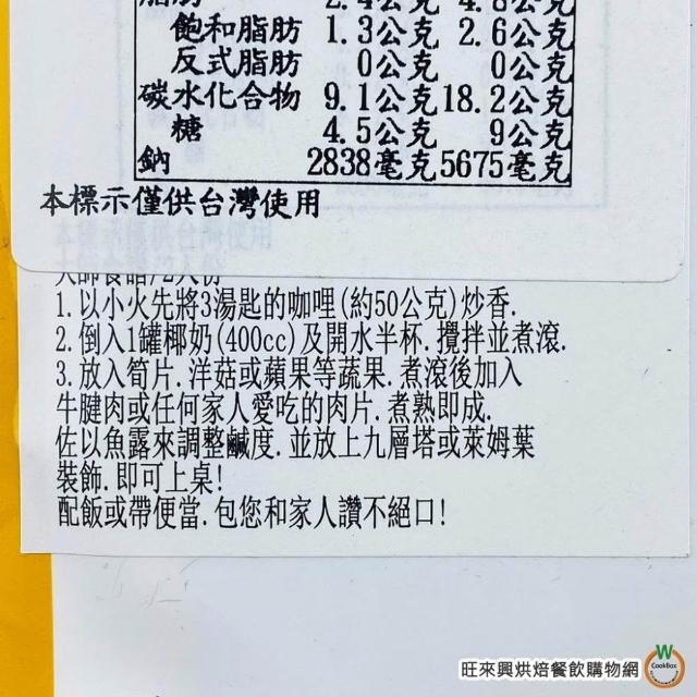 旺來興烘焙餐飲購物網COCK 泰式咖哩 系列 黃咖哩 紅咖哩 綠咖哩 50g /包 南洋咖哩 五辛素