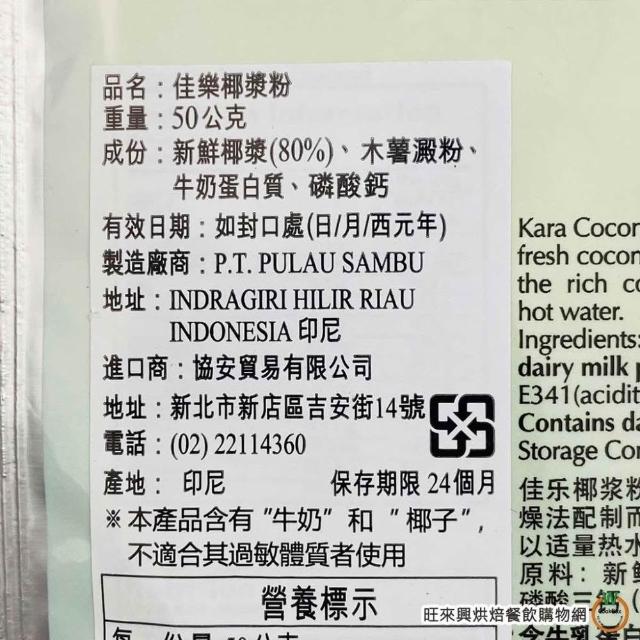 旺來興烘焙餐飲購物網kara 佳樂 椰漿粉 50g / 包 椰漿 椰奶粉 Coconut Cream Powder