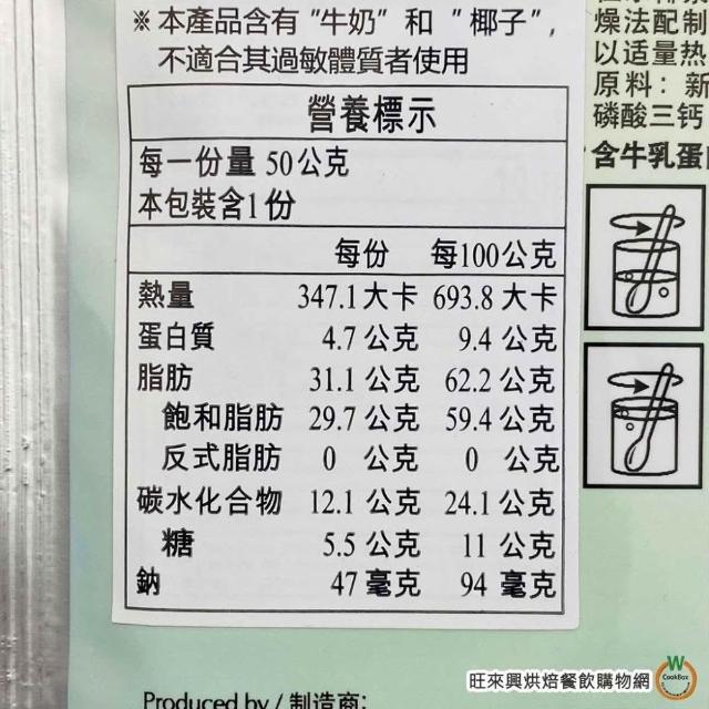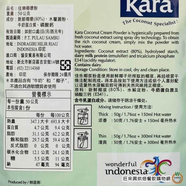 旺來興烘焙餐飲購物網kara 佳樂 椰漿粉 50g / 包 椰漿 椰奶粉 Coconut Cream Powder