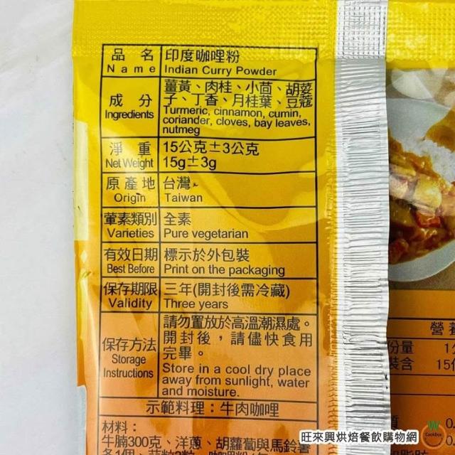 旺來興烘焙餐飲購物網新光 印度咖哩粉 15g±3g 全素 香料粉 調味粉