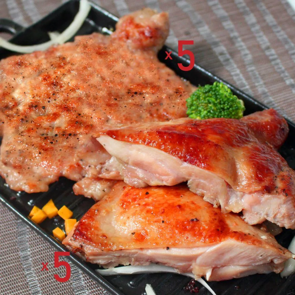 金園排骨厚切排骨5片+金饌雞腿排5片 單片真空包裝/可用氣炸鍋料理/免運