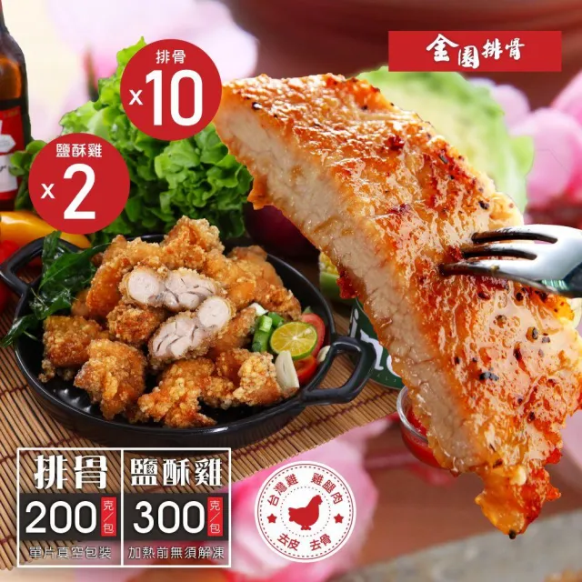 金園排骨厚切手打排骨10片+鹽酥雞腿肉2包 免運