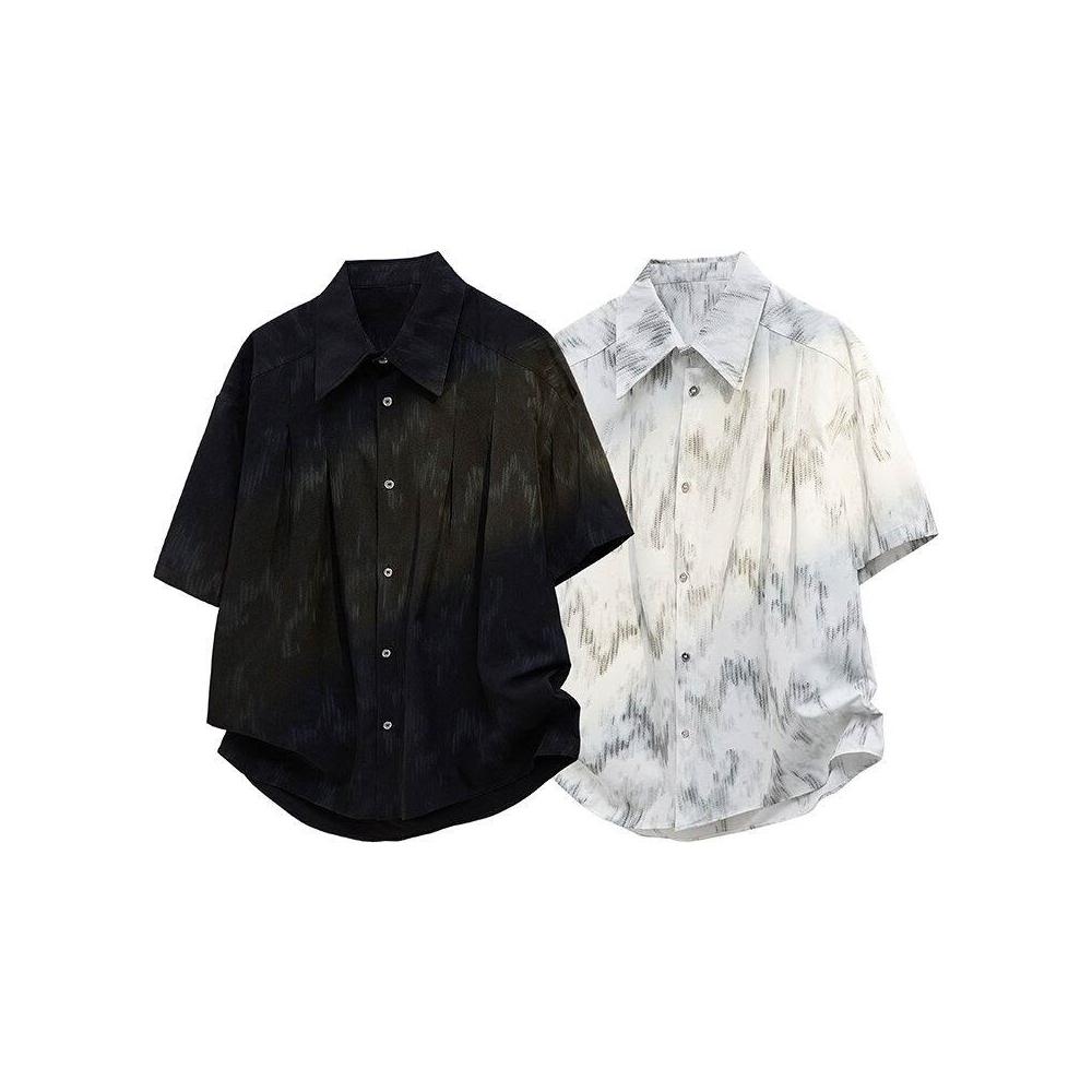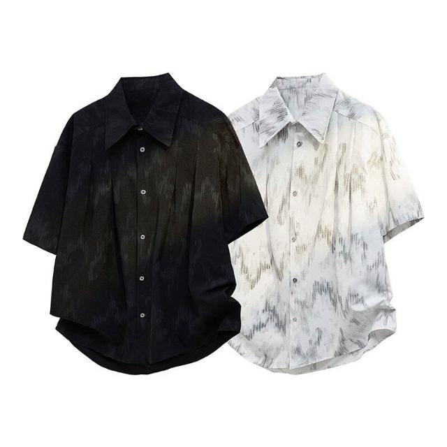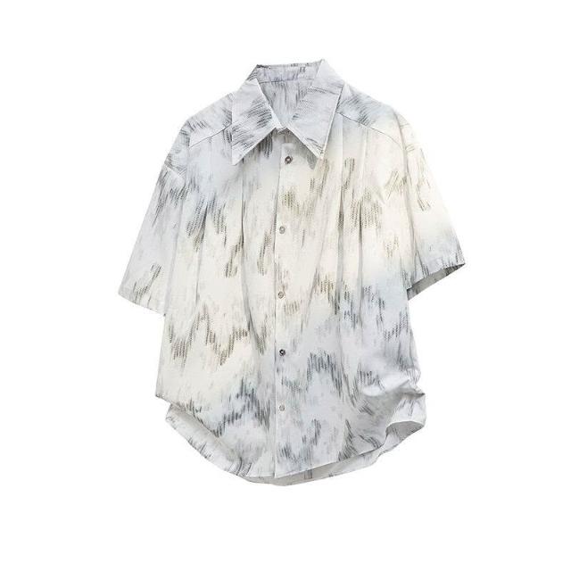 襯衫男短袖夏季薄款透氣襯衫休閒上衣涼感衣男士冰絲速乾襯衫美式扎染短袖T恤西裝襯衫男翻領商務短袖襯衫寬鬆百搭涼爽運動半袖男
