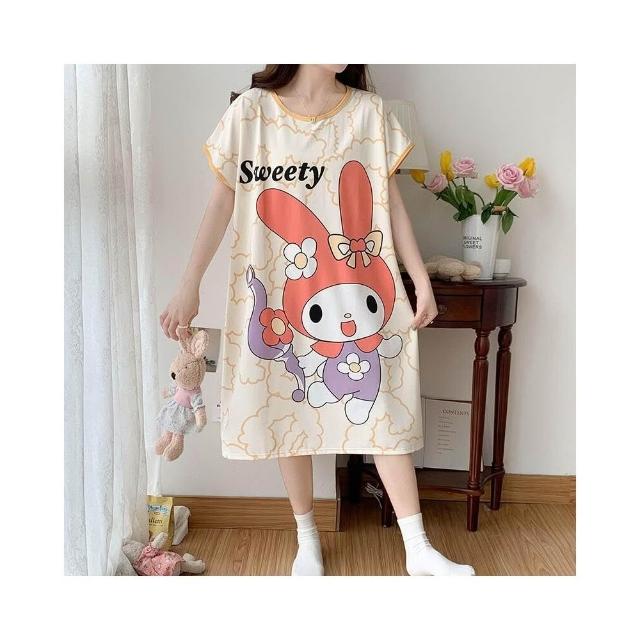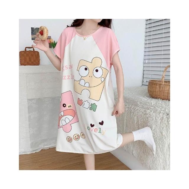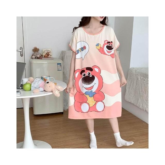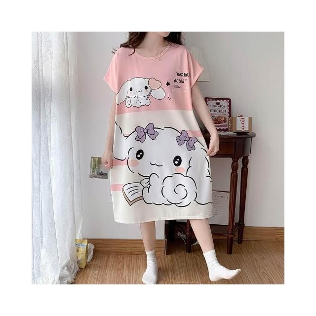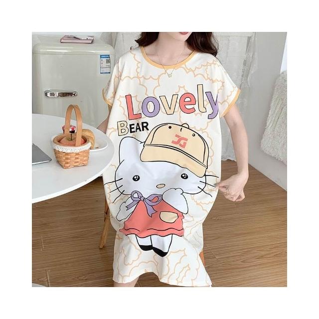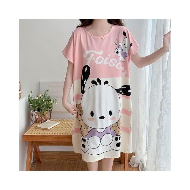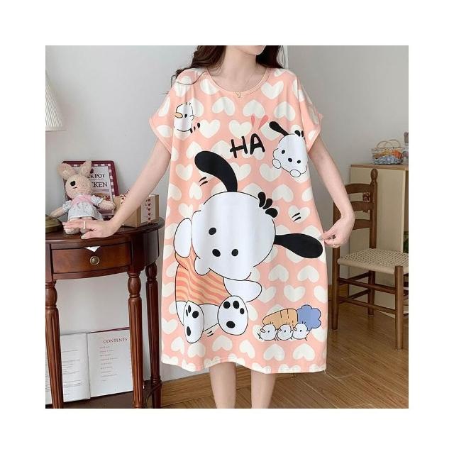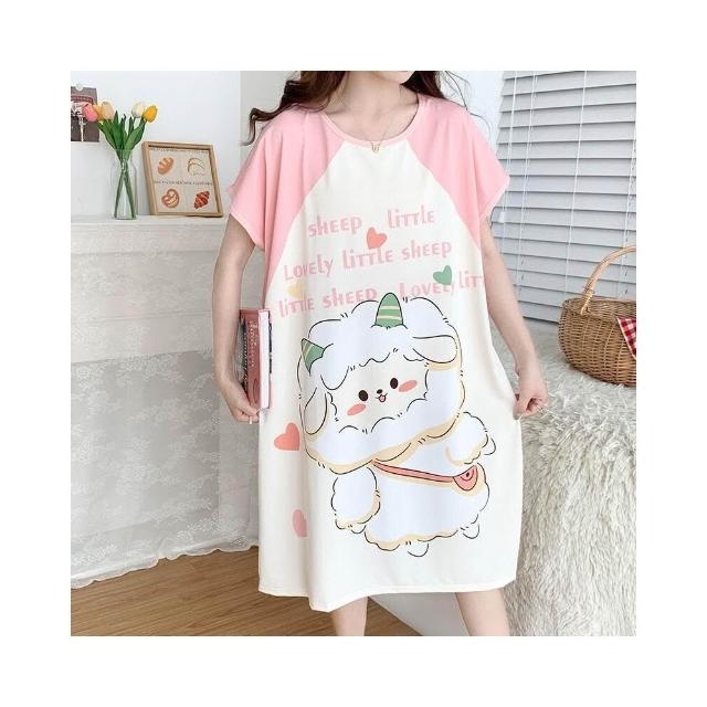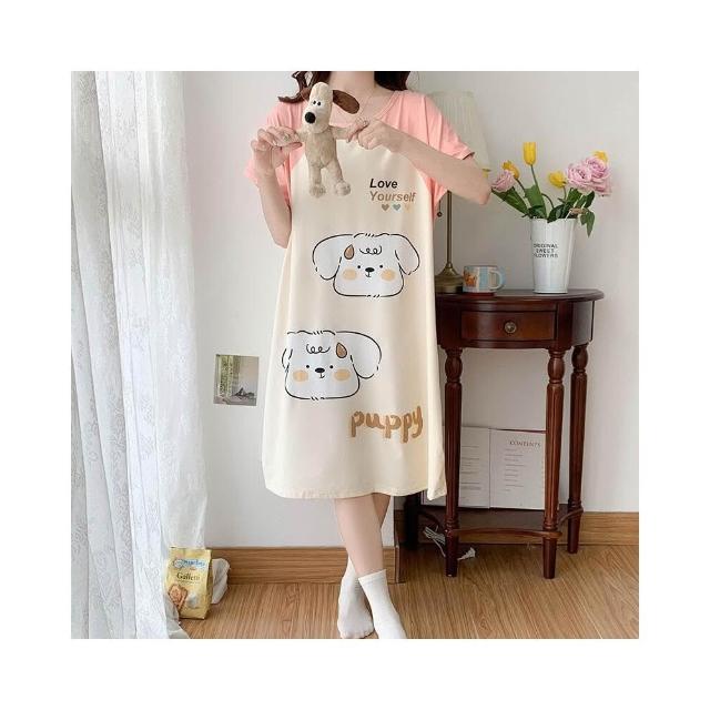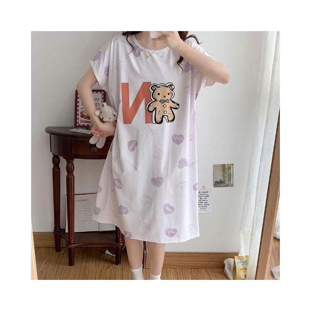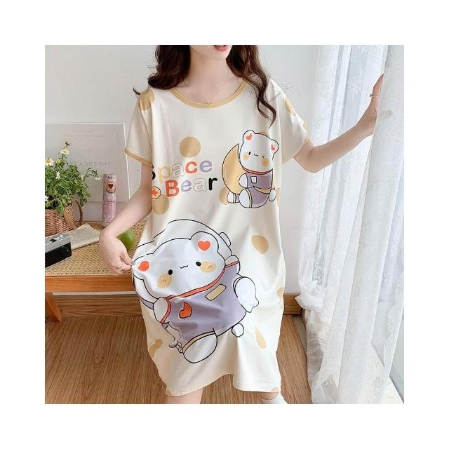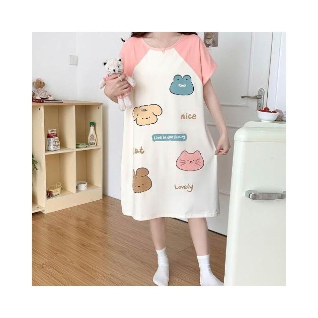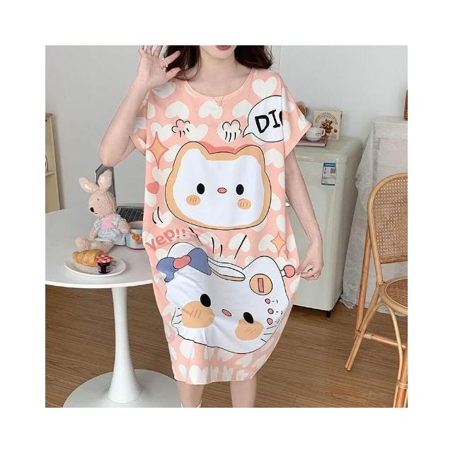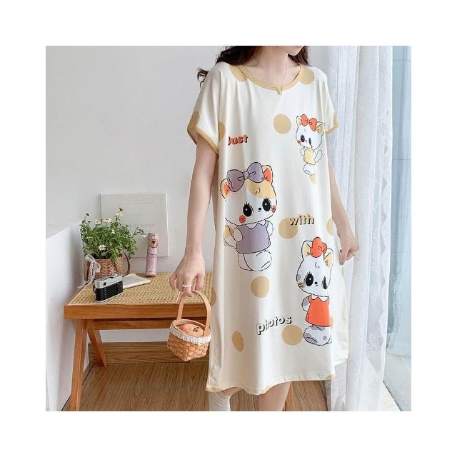 夏季睡衣裙女2025新款休閒短袖居家服女款學生純棉睡衣女童卡通可愛家居服大尺碼女生連體睡裙可外穿連身裙女士媽媽哺乳上衣