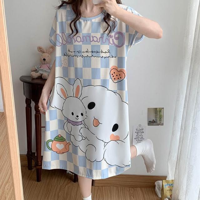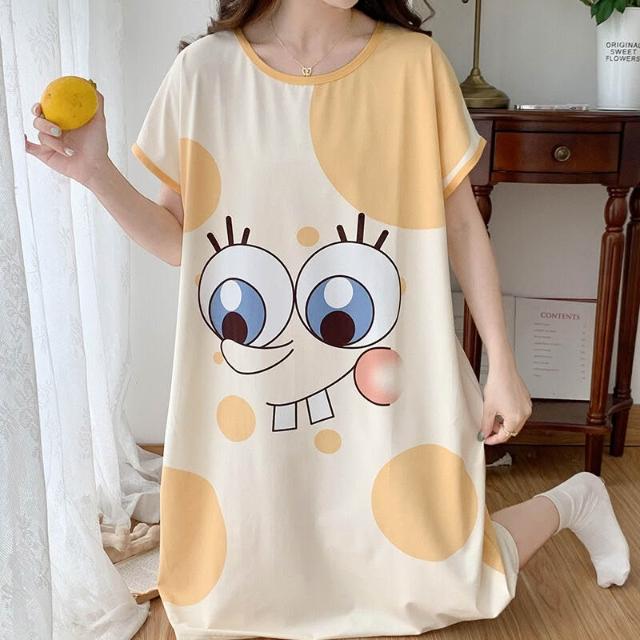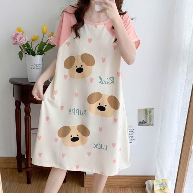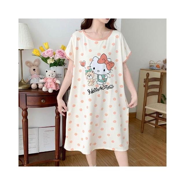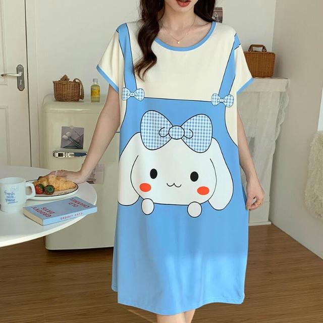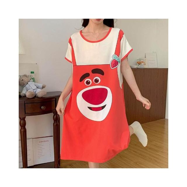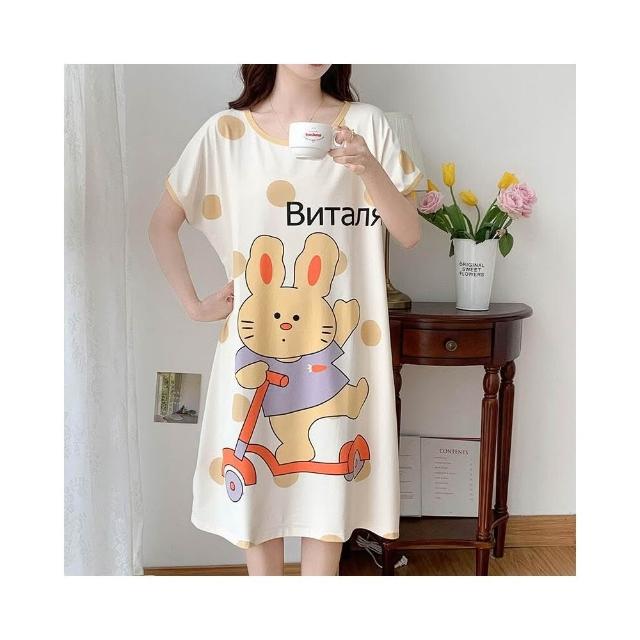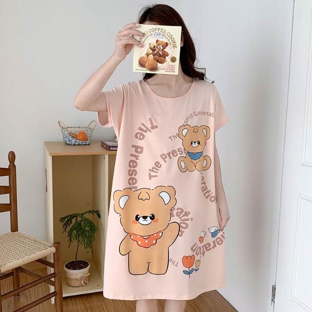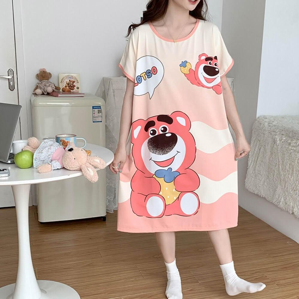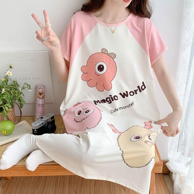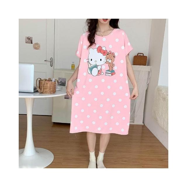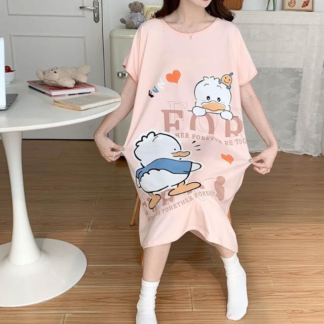 夏季睡衣裙女2025新款休閒短袖居家服女款學生純棉睡衣女童卡通可愛家居服大尺碼女生連體睡裙可外穿連身裙女士媽媽哺乳上衣