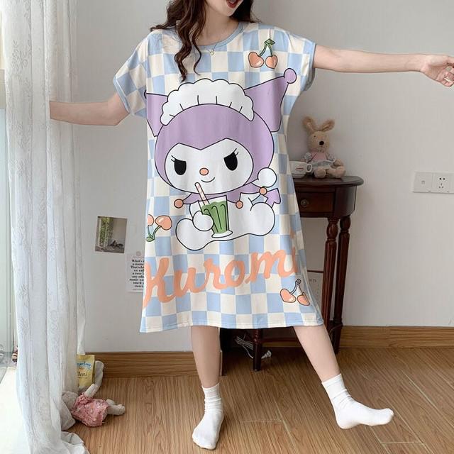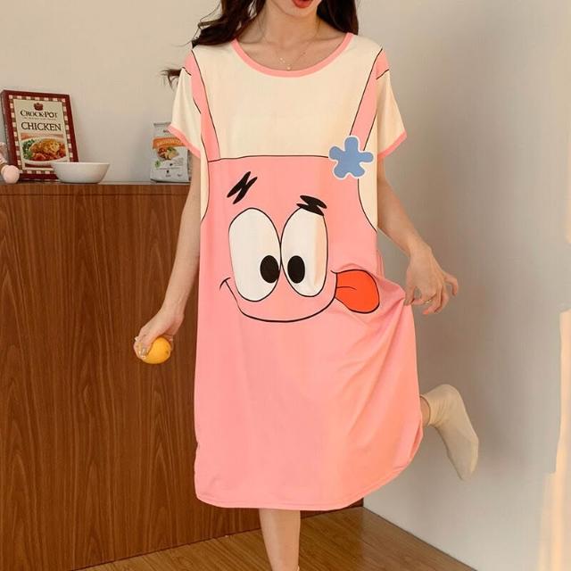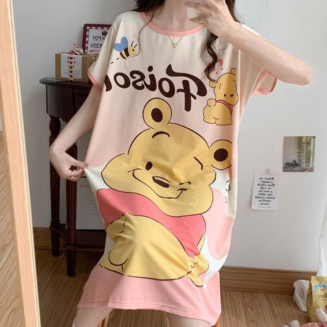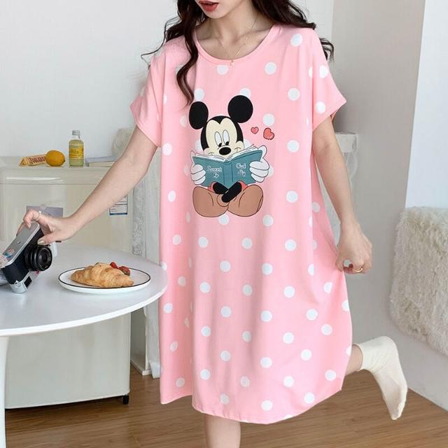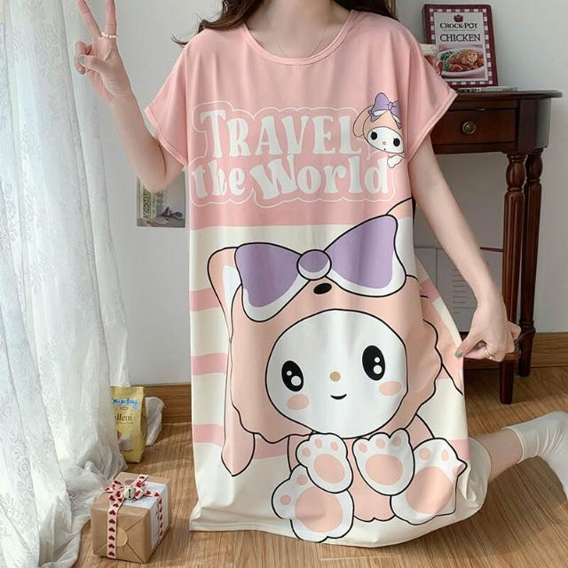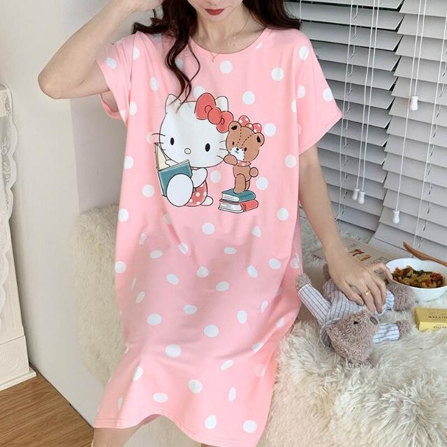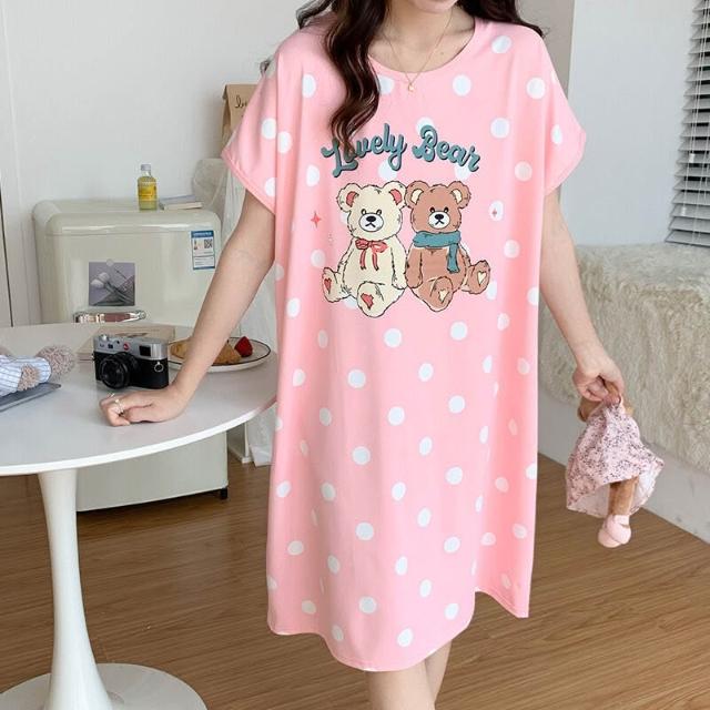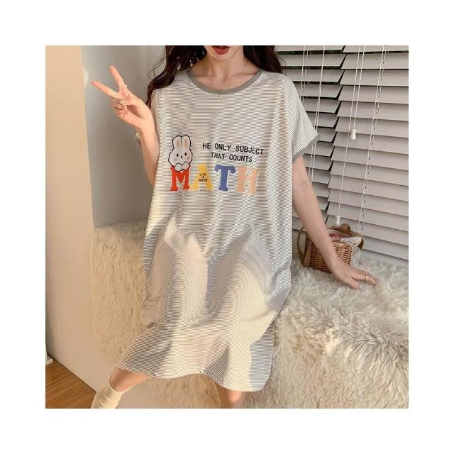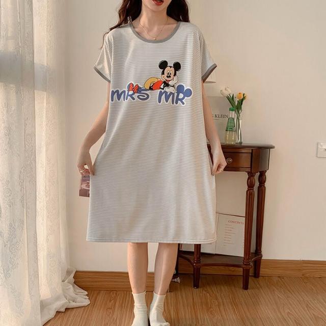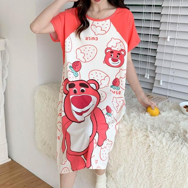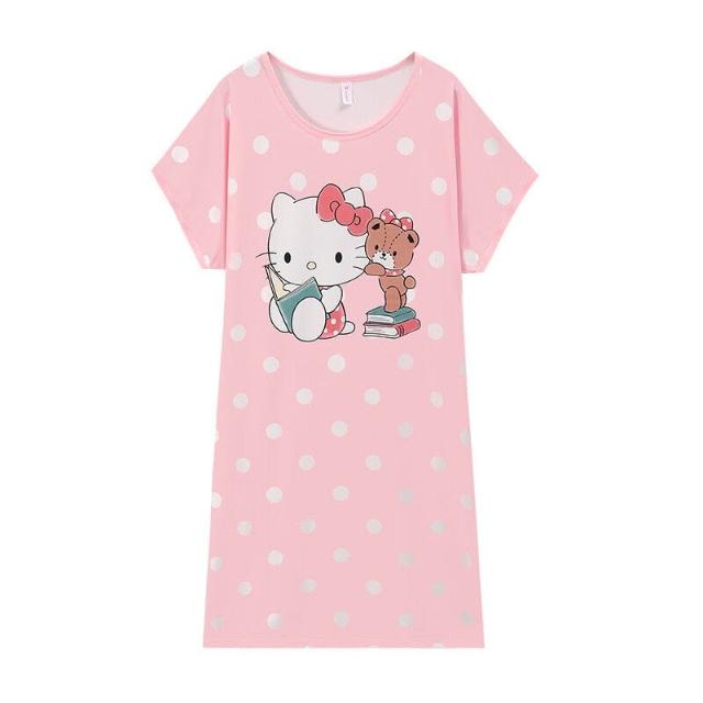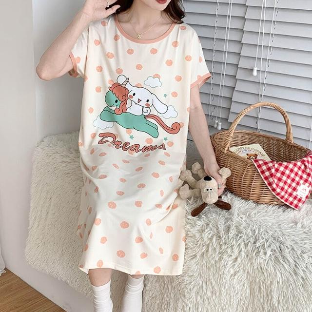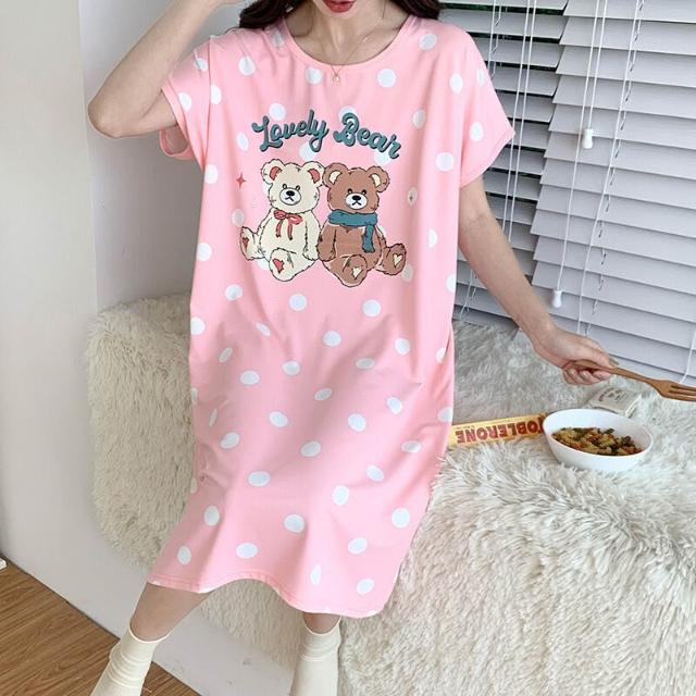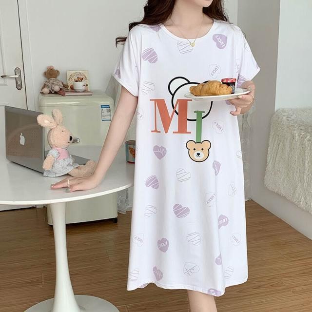 夏季睡衣裙女2025新款休閒短袖居家服女款學生純棉睡衣女童卡通可愛家居服大尺碼女生連體睡裙可外穿連身裙女士媽媽哺乳上衣