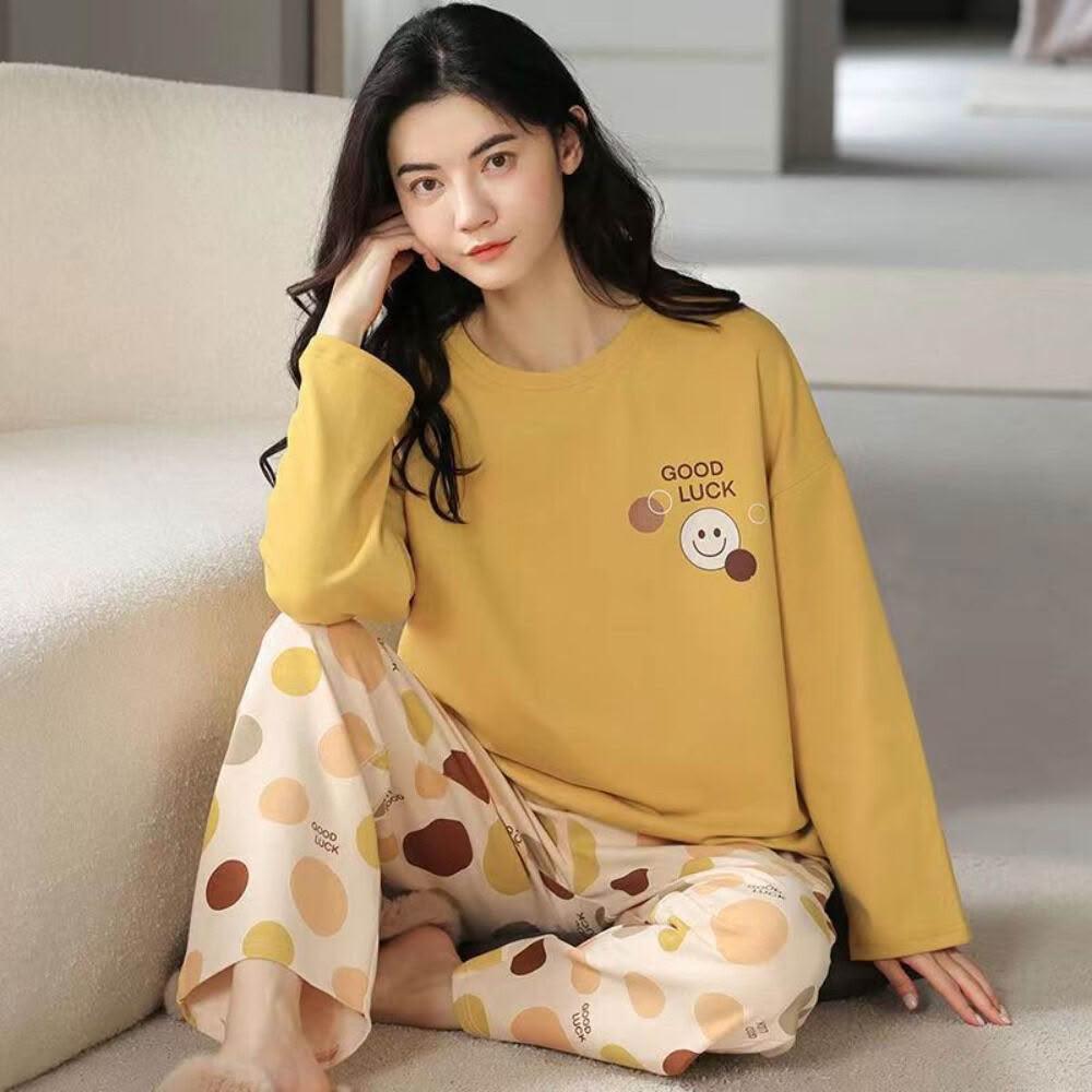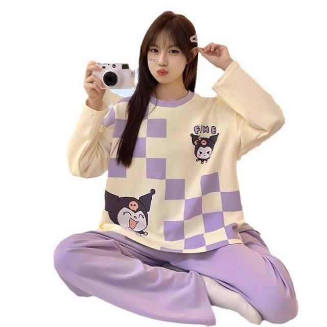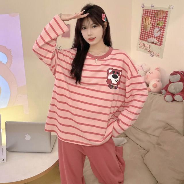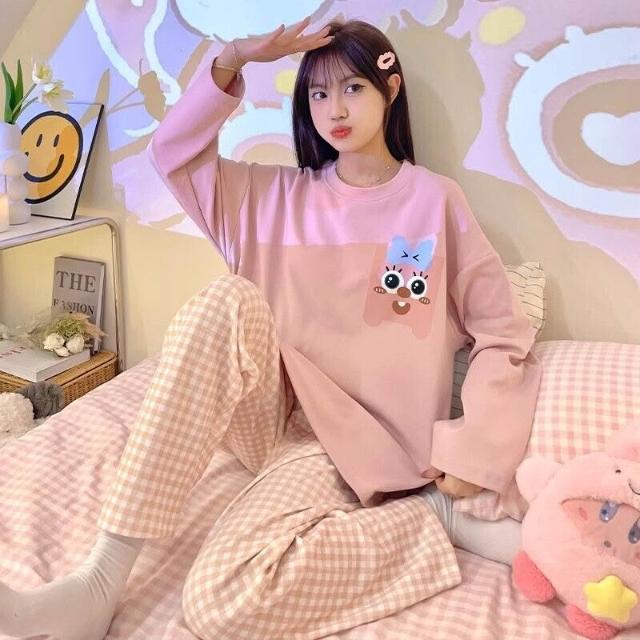春秋季睡衣套裝女2025新款大尺碼兩件式居家服女生純棉長袖睡衣韓國女童可愛家居服可外穿女款學生居家薄睡衣女士媽媽哺乳上衣