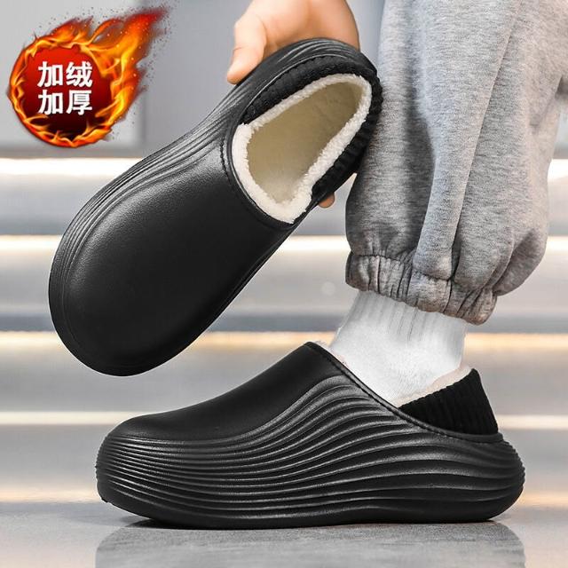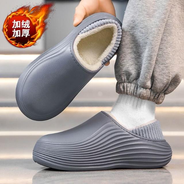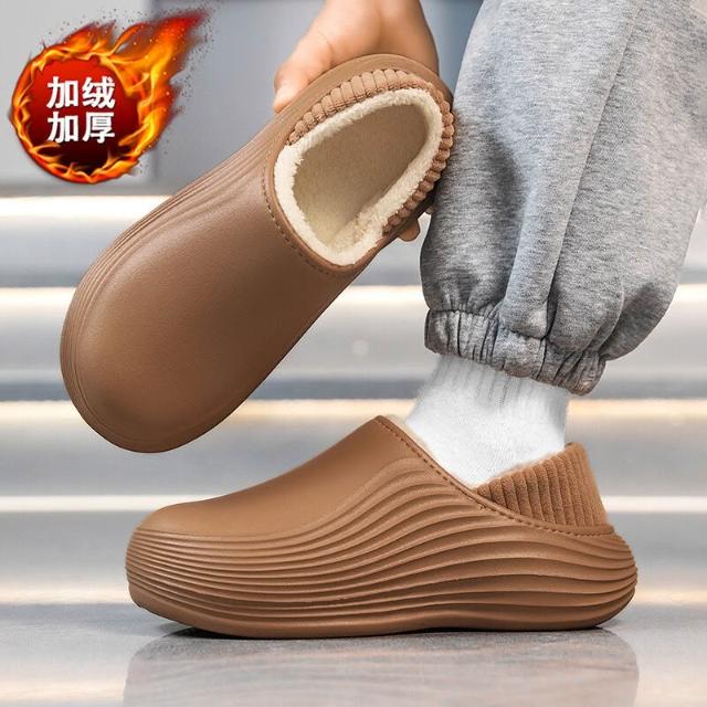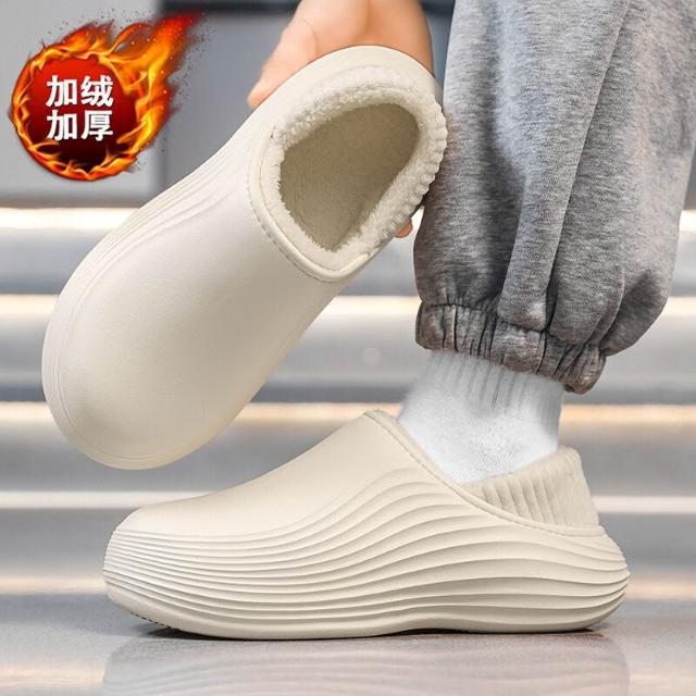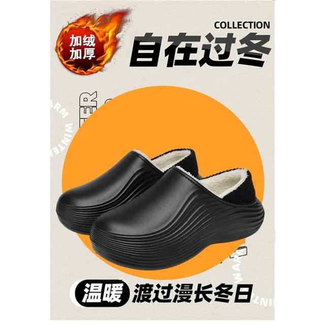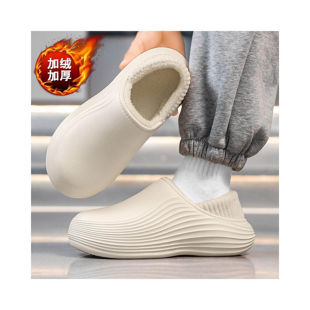 拖鞋男冬季韓國室内防滑防水寬楦學生休閑鞋舒適厚底支撐減壓足弓拖鞋加絨保暖輕量一脚蹬男鞋透氣增高大尺碼情侶鞋子時尚百搭棉拖