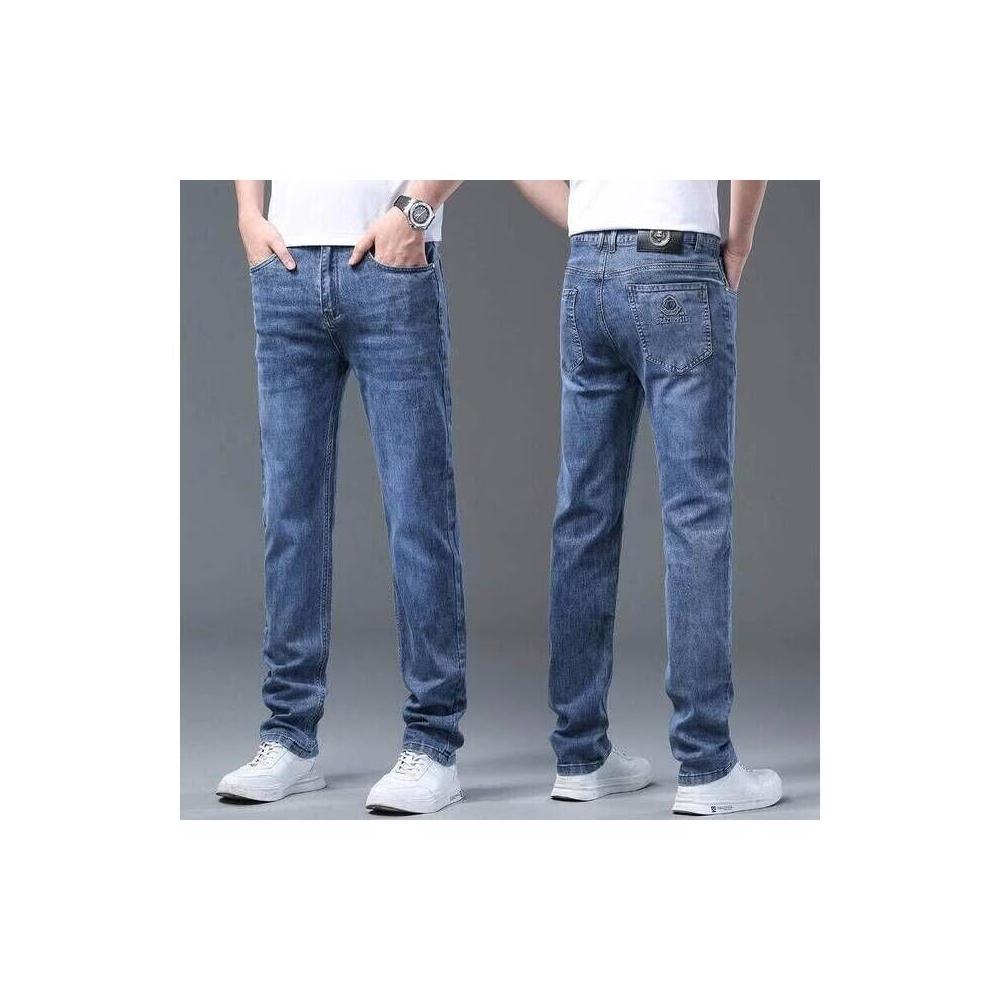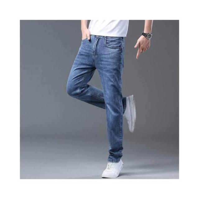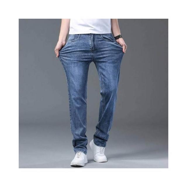 直筒牛仔褲男大尺碼彈性寬褲男生夏天薄款透氣長褲彎刀闊腿休閒褲男款寬鬆耐磨工作褲商務垂感顯瘦褲子涼感牛仔長褲冰絲牛仔褲