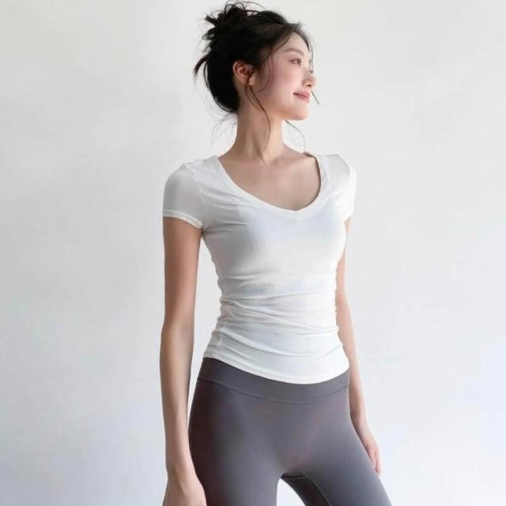 涼感衣女短袖T恤瑜伽服運動健身服空調服速乾衣冰絲衣瑜伽t恤高彈力裸感修身薄款透氣收腰緊身顯瘦內搭運動跑步健身吸濕排汗輕薄透氣修身短袖