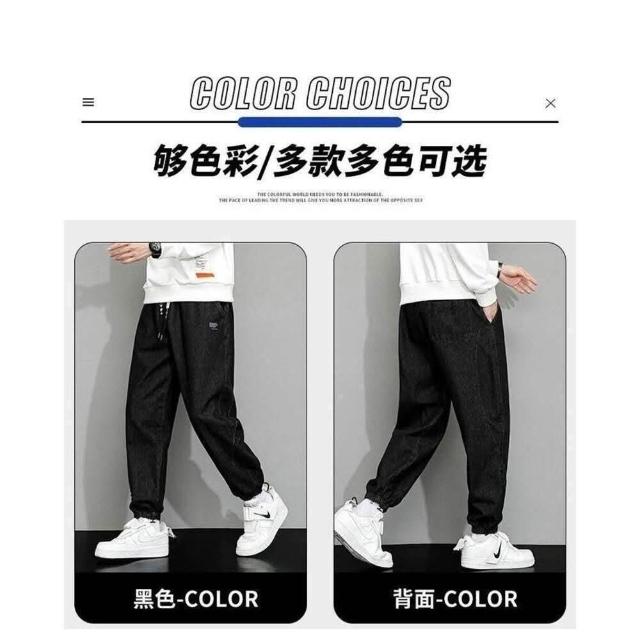 九分牛仔褲男女大尺碼彈性寬褲男生春秋季薄款透氣長褲鬆緊束口哈倫休閒褲男款寬鬆耐磨工作褲美式高街垂感顯瘦牛仔長褲鬼洗牛仔褲
