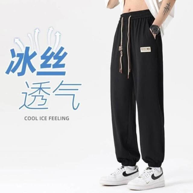 運動褲男夏天休閒登山騎車速乾排汗長褲大尺碼冰絲涼感戶外直筒運動褲輕薄透氣舒適褲冰絲涼感寬褲鬆緊束腳防曬工作褲籃球慢跑長褲