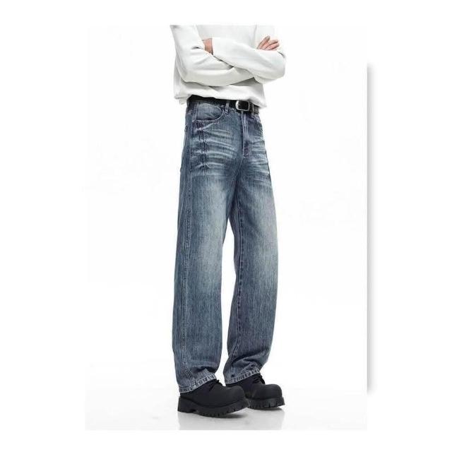 牛仔褲男夏季爆款潮流高品質美式復古水洗長褲男士百搭寬松直筒褲男潮牌窄版時尚牛仔長褲機能寬褲休閒褲耐磨登山褲垂感韓國彎刀褲