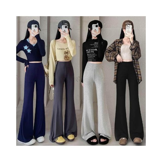 運動褲美式女春秋高腰垂感顯瘦衛褲子修身直筒休閑褲鬆緊居家工裝褲高腰顯瘦微喇女褲登山降落闊腿褲跑步健身速乾吸濕排汗休閒長褲