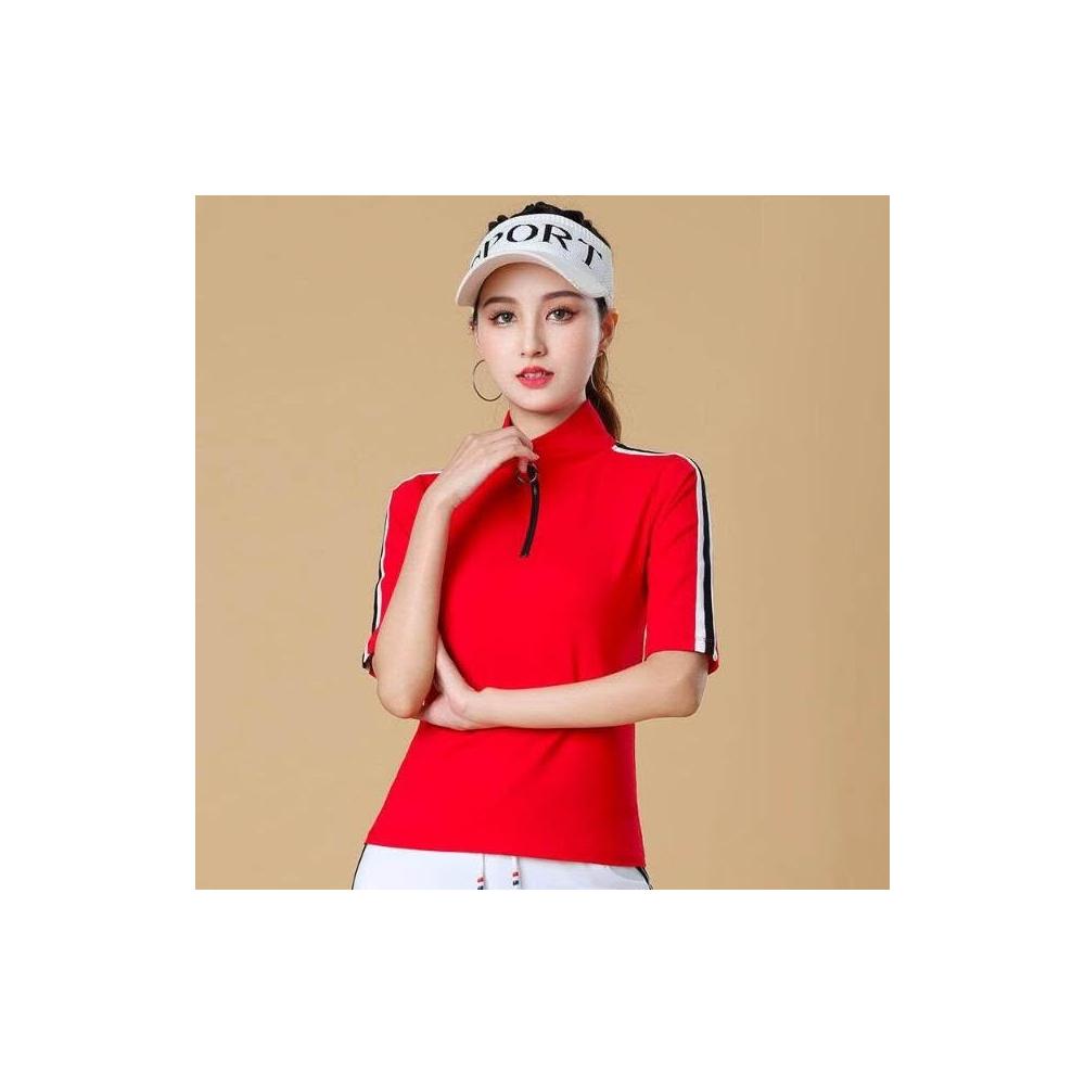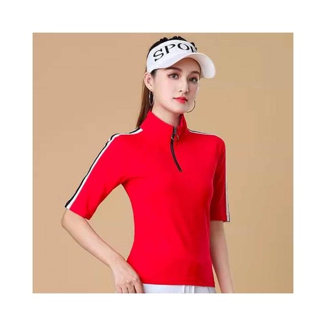POLO衫冰絲T恤女薄款涼感速乾寬鬆落肩通勤簡約簡約素面柔軟抗皺不變形親膚透氣印花時尚撞色潮流夏款POLO領短袖T恤夏季潮流女士透氣運動打底衫戶外POLO恤