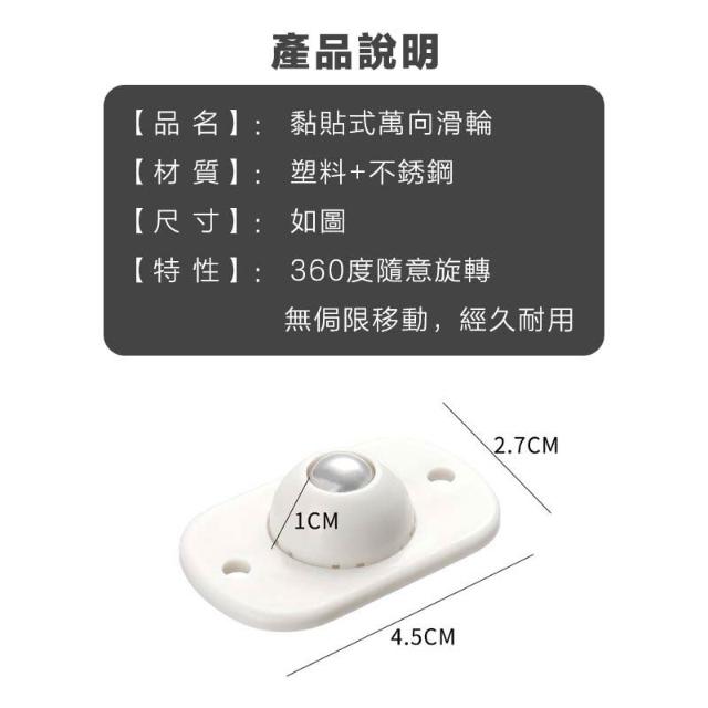 黏貼式萬向滑輪 床底收納箱底部滾輪 黏貼滾輪 省力滾輪貼 置物架滾輪 萬向輪 垃圾桶輪子 家具推車輪