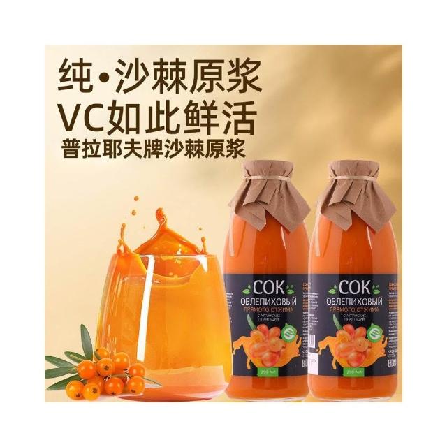 花花優選俄羅斯原裝進口沙棘汁原漿野生新鮮果汁100%濃度VC飲料即食0脂