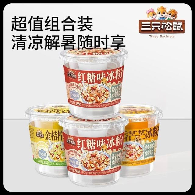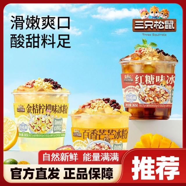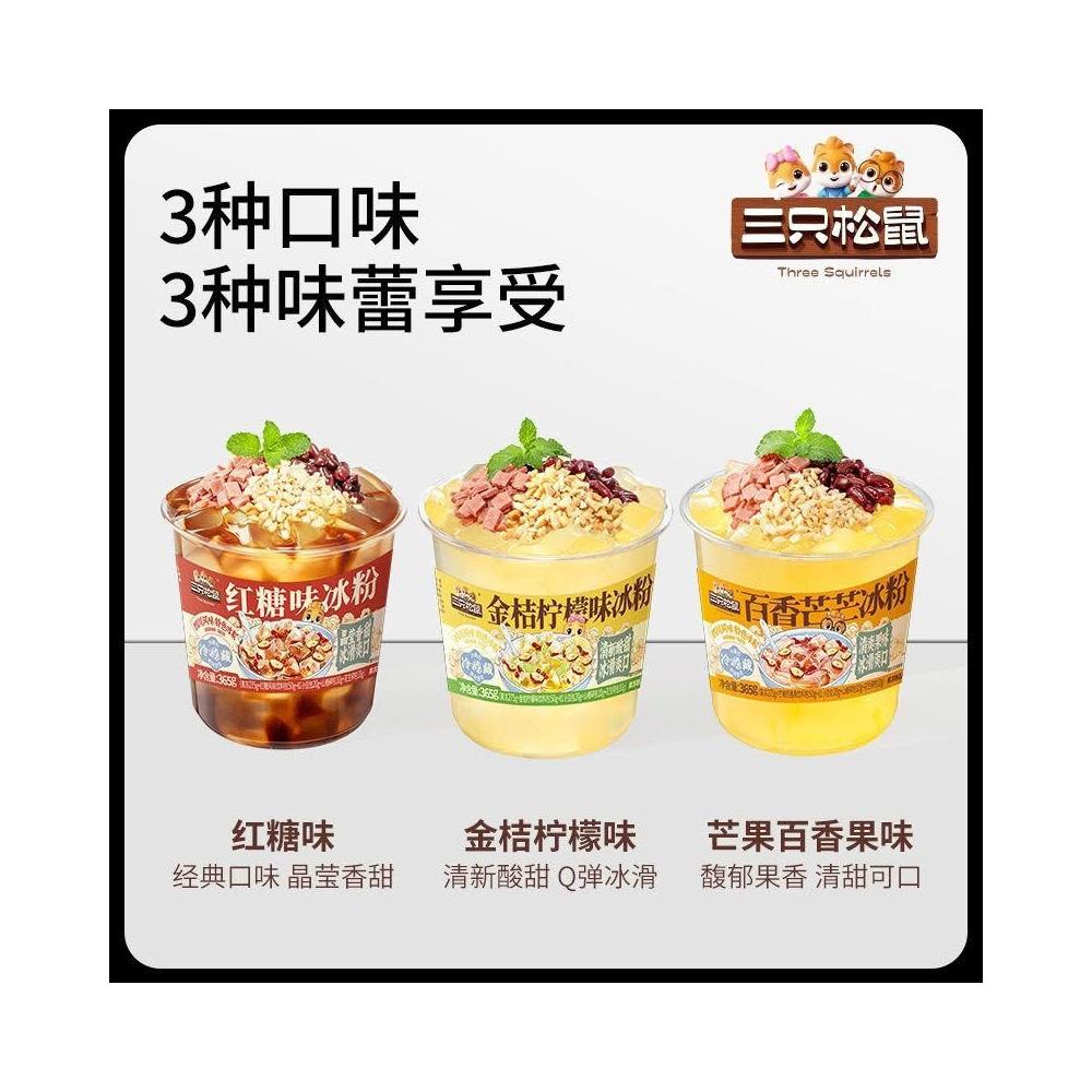新店開業限時特價 免運 三隻松鼠冰粉365g*1碗休閒零食果凍布丁紅糖味檸檬味百香果味 冰粉 布丁 休閒零食