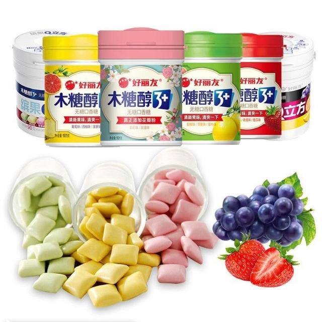 優選好麗友木糖醇無糖口香糖 花香味多水果味 休閑零食 無糖口香 口氣清新 葡萄味 西柚味菠蘿味 獨立罐裝