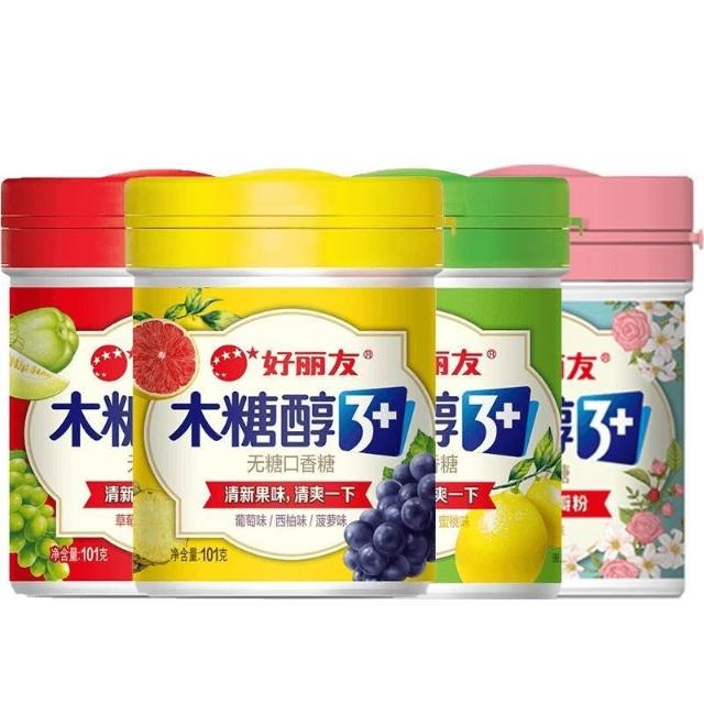 優選好麗友木糖醇無糖口香糖 花香味多水果味 休閑零食 無糖口香 口氣清新 葡萄味 西柚味菠蘿味 獨立罐裝