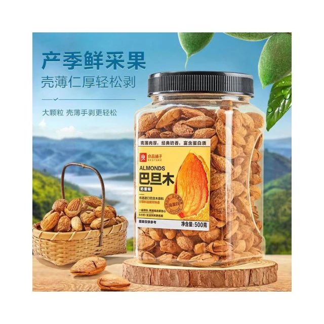花花優選奶香巴旦木500g 罐裝 堅果 休閒零食 大顆粒 休閒小吃 食品 家庭量販