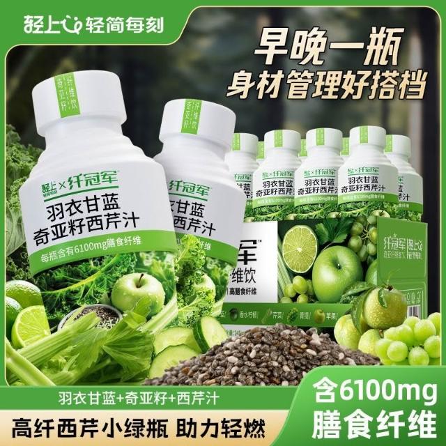 花花優選奇亞籽纖維飲西芹汁羽衣甘藍纖維代餐果蔬汁飲品
