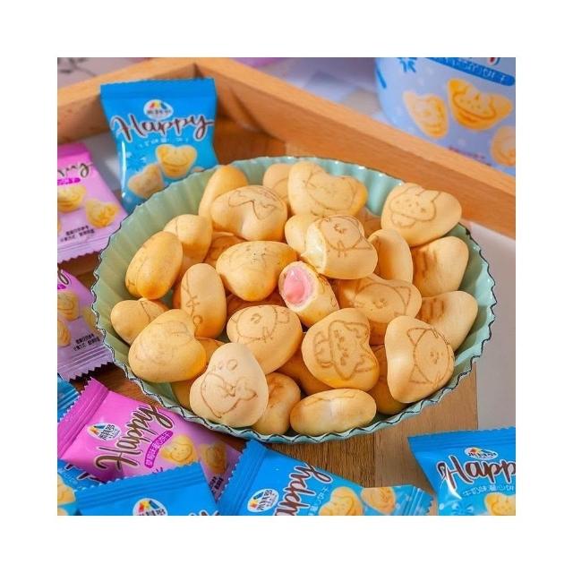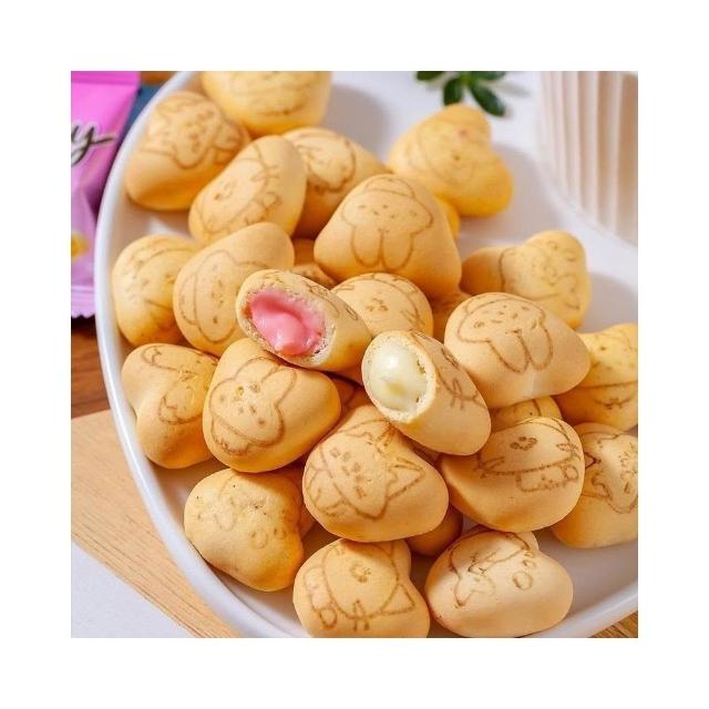 米其多小熊灌心餅乾 兒童夾心爆漿餅乾 牛奶味 巧克力 草莓口味餅乾 休閒零食品