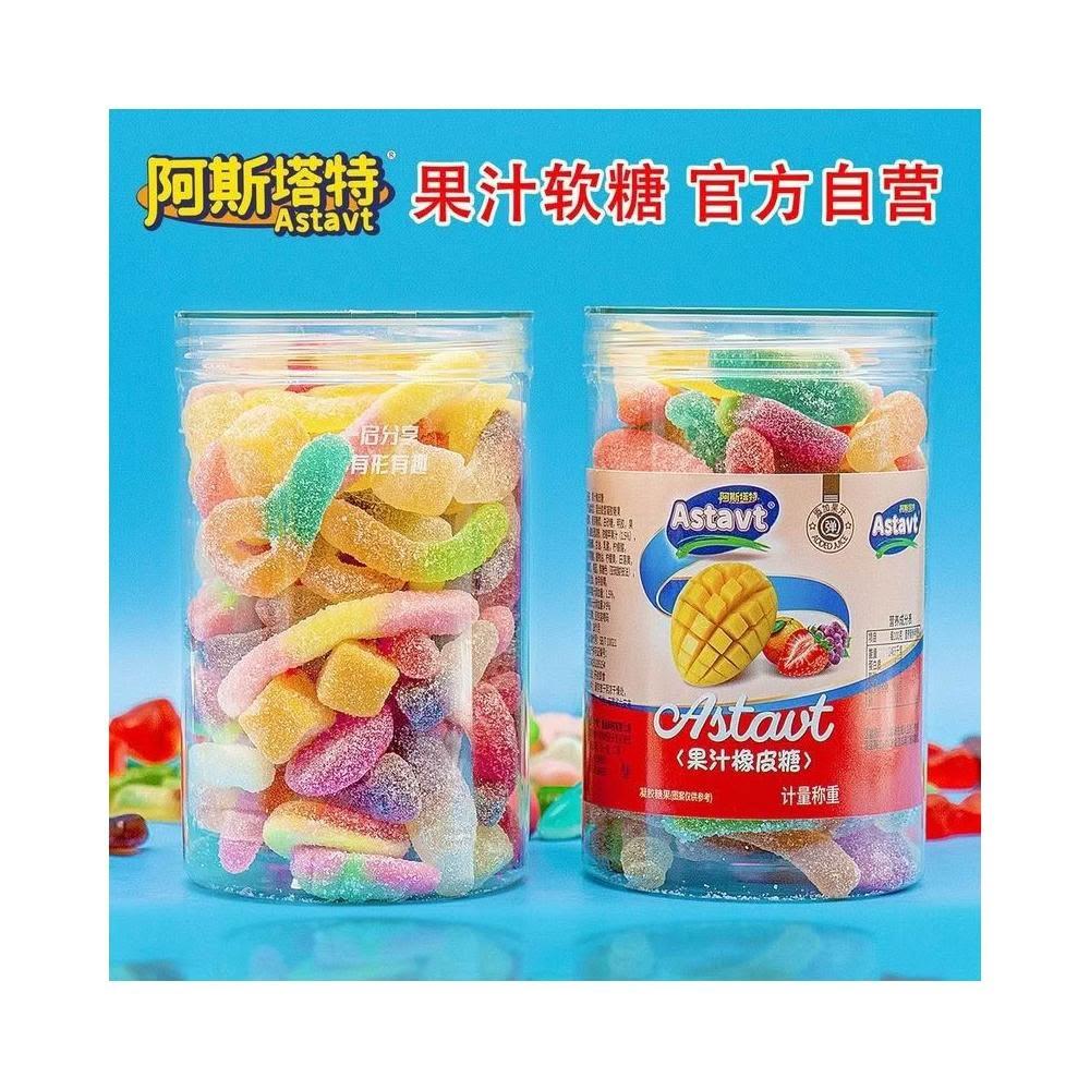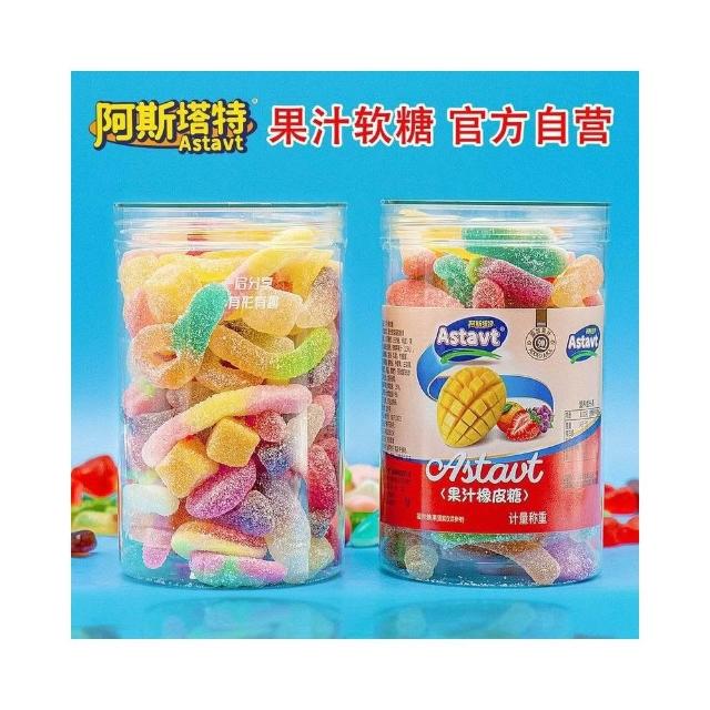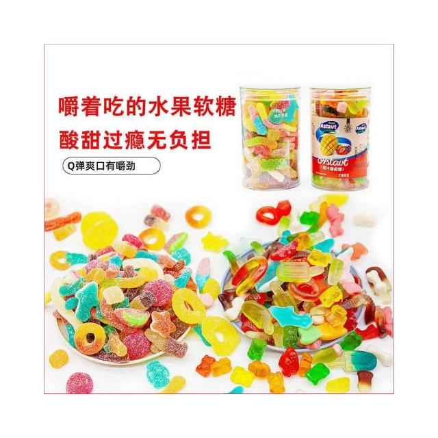 阿斯塔特爆款果汁軟糖 酸砂qq糖 網紅休閒零食 零食 罐裝 糖果
