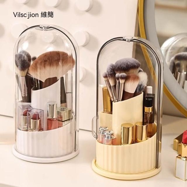 化妝收納盒 旋轉防塵梳妝檯化妝品收納盒 口紅眼影置物架 桌面筆筒
