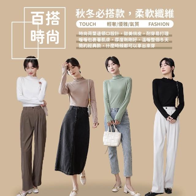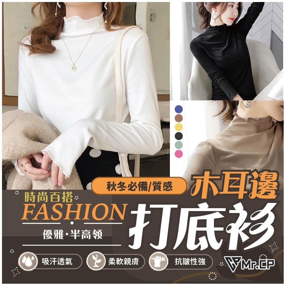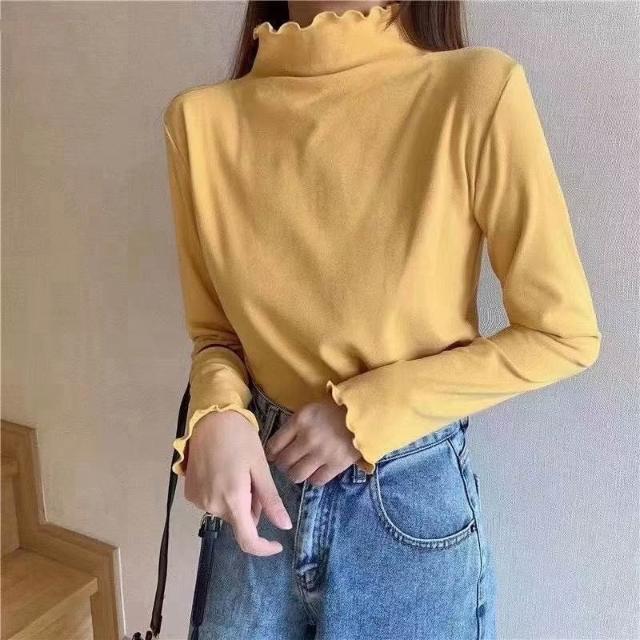 太好穿了請包色🔥木耳邊打底衫 高領打底衫 內搭高領上衣 木耳邊長袖 內搭打底衣 半高領打底衫 薄絨 女生毛衣 針織上衣