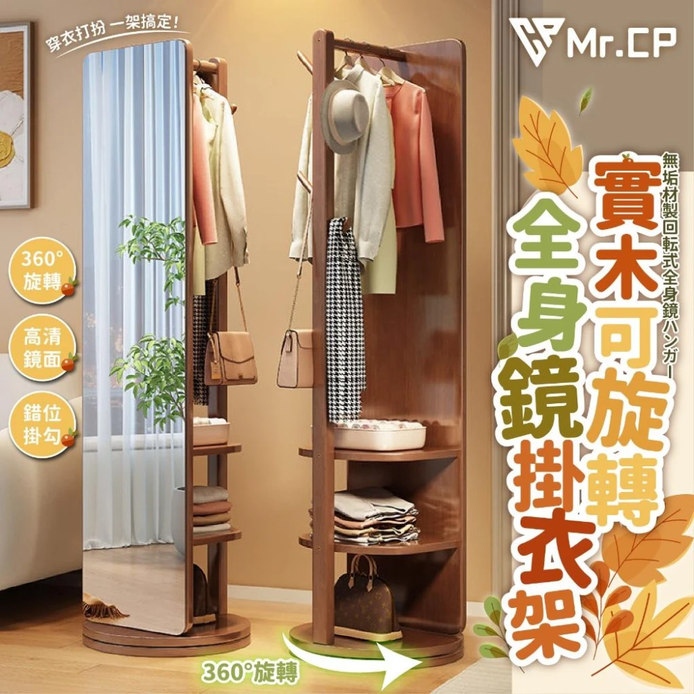 多功能全身鏡🪞 全身鏡旋轉掛衣架 全身鏡 穿身鏡 實木穿衣鏡 落地鏡 衣帽鏡 掛衣架鏡子 家用試衣鏡 可旋轉移動試衣鏡