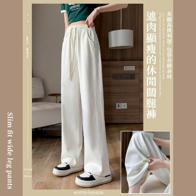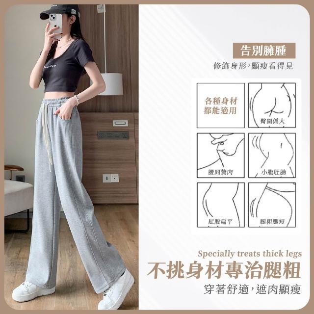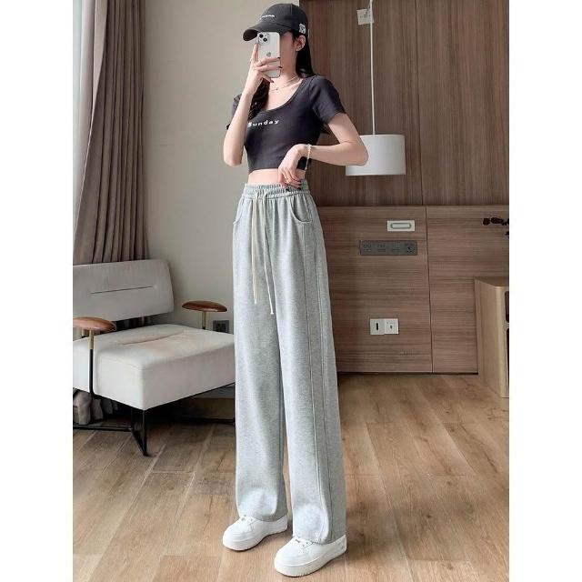 版型好看❣️窄版闊腿褲 休閒褲 運動褲女 直筒褲 垂墜感寬褲 落地褲 顯瘦長褲 女生長褲 高腰綁繩 落地挺版棉褲 香蕉褲