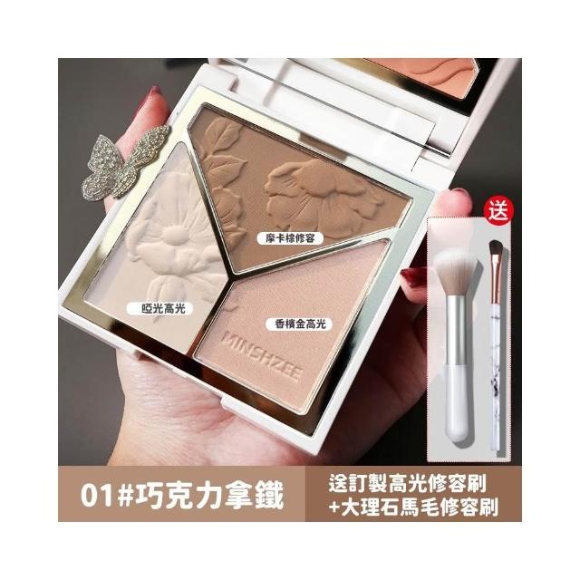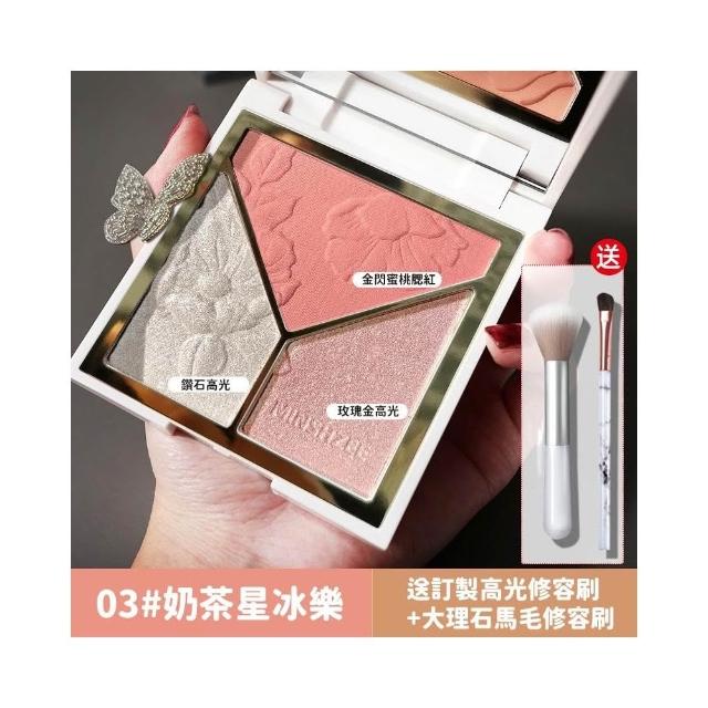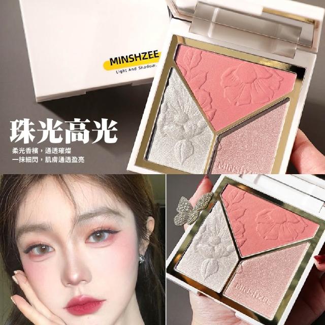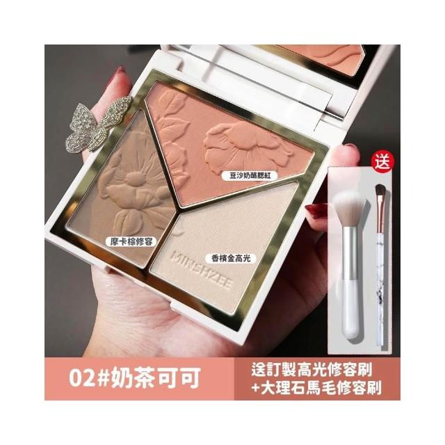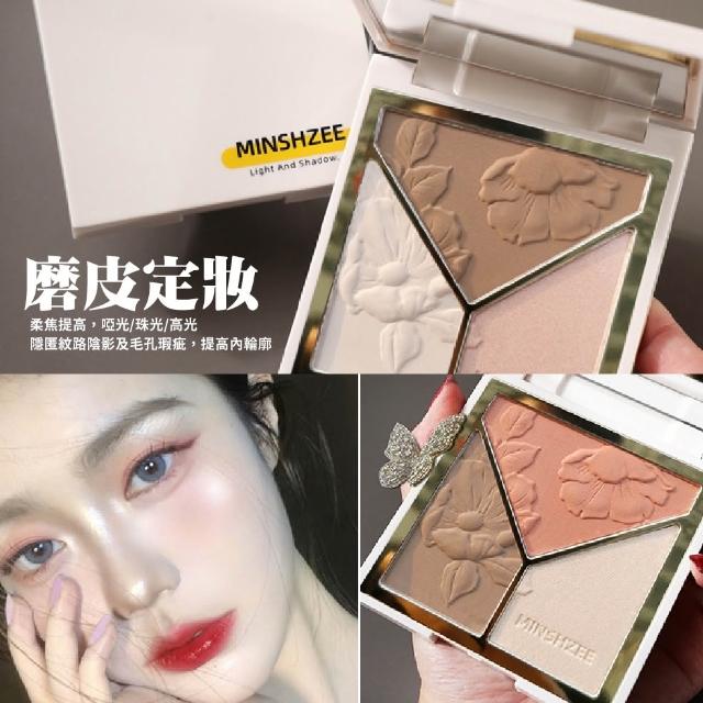 小臉神器 贈兩隻修容刷🔥高光腮紅三合一修容盤 光影藝術家修容盤 啞光高光 鼻影修容 腮紅 修容 珠光 三色修容盤 彩妝