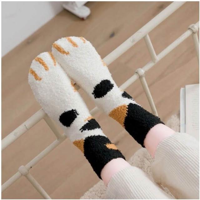 🔥台灣現貨免運🔥貓爪珊瑚絨襪 貓爪襪 貓掌 中筒襪 貓咪 毛圈襪 加厚毛襪 襪子 女襪 中長筒 襪 棉襪 韓系 秋冬
