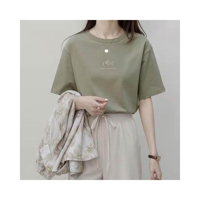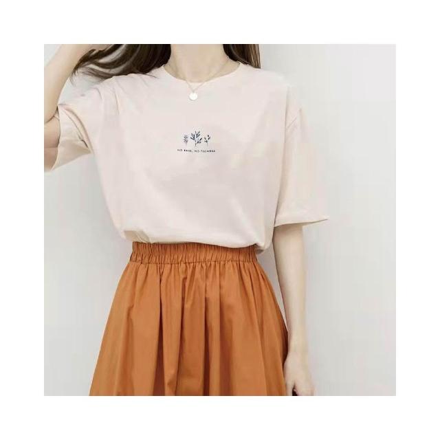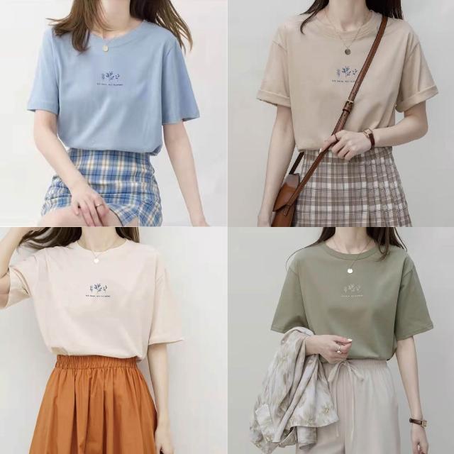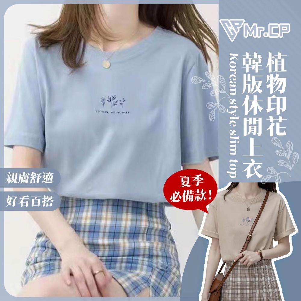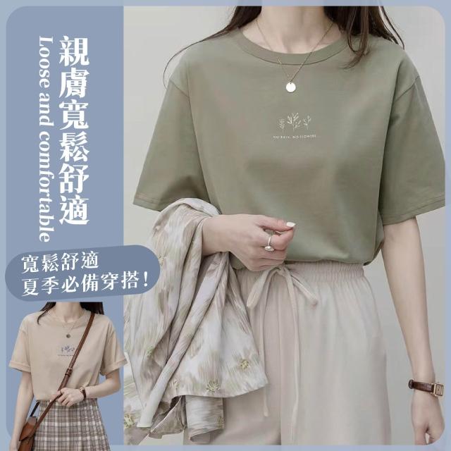 夏季必備款🎀韓版圓領短袖t恤女 夏季短袖上衣 休閒T恤 多色寬鬆植物印花短袖T恤 T恤 寬鬆短T 短袖T 女裝 女上衣