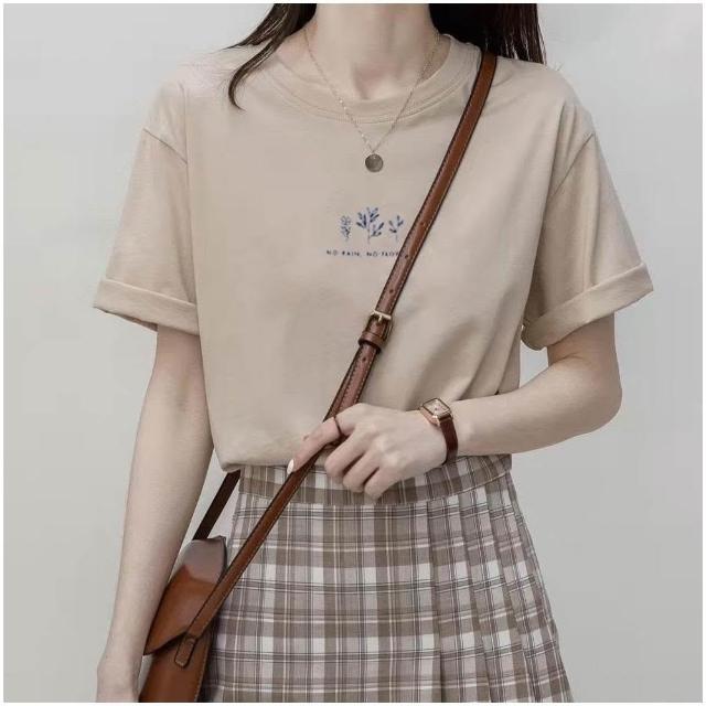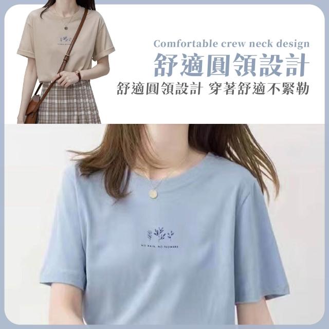 夏季必備款🎀韓版圓領短袖t恤女 夏季短袖上衣 休閒T恤 多色寬鬆植物印花短袖T恤 T恤 寬鬆短T 短袖T 女裝 女上衣