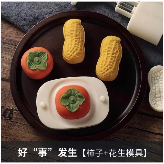 嚴選~台灣現貨 模具 新款 ( 好柿會花生摸具 ) 花生月餅模具 不粘手壓印模 冰皮月餅糕點創意好柿花生手壓式模具