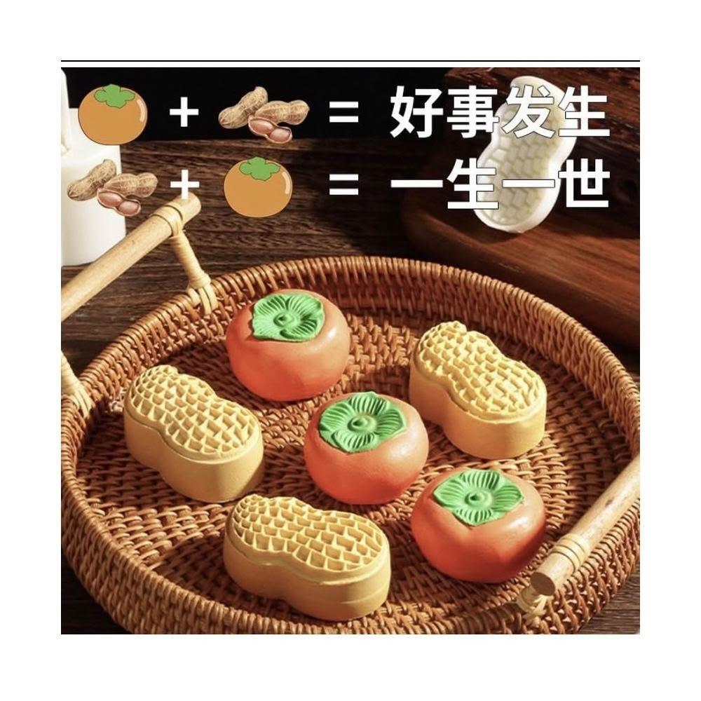 嚴選~台灣現貨 模具 新款 ( 好柿會花生摸具 ) 花生月餅模具 不粘手壓印模 冰皮月餅糕點創意好柿花生手壓式模具