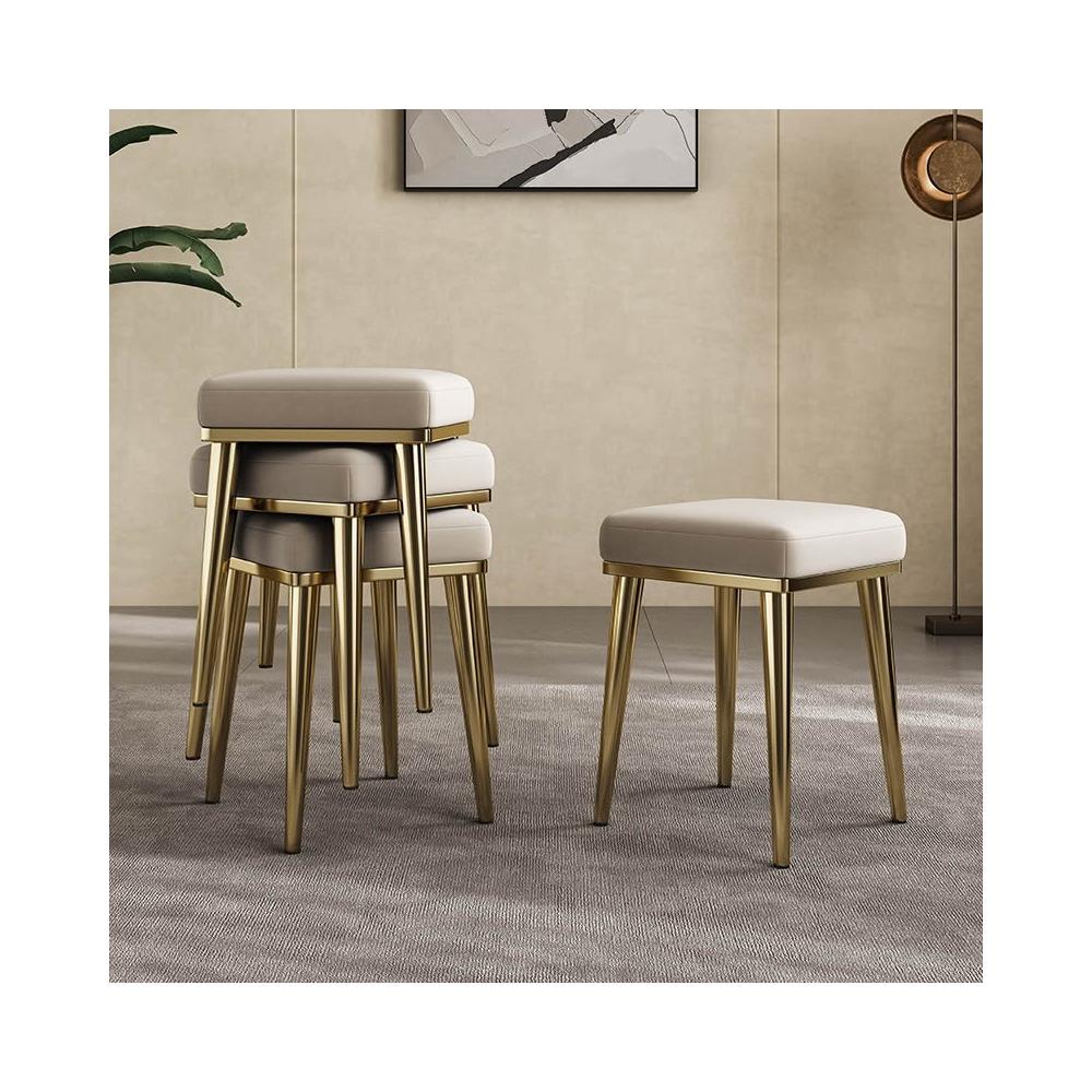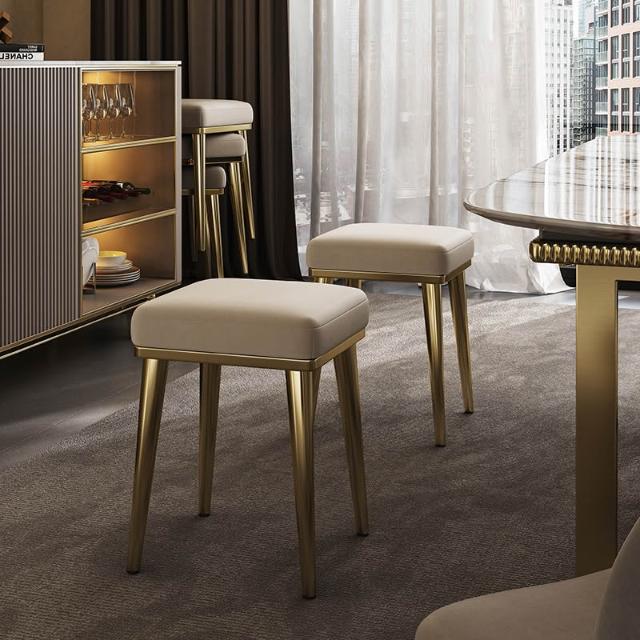 餐凳 凳子 軟包凳 輕奢真皮餐椅家用可疊放方凳餐桌備用凳子現代簡約不銹鋼牛皮椅子