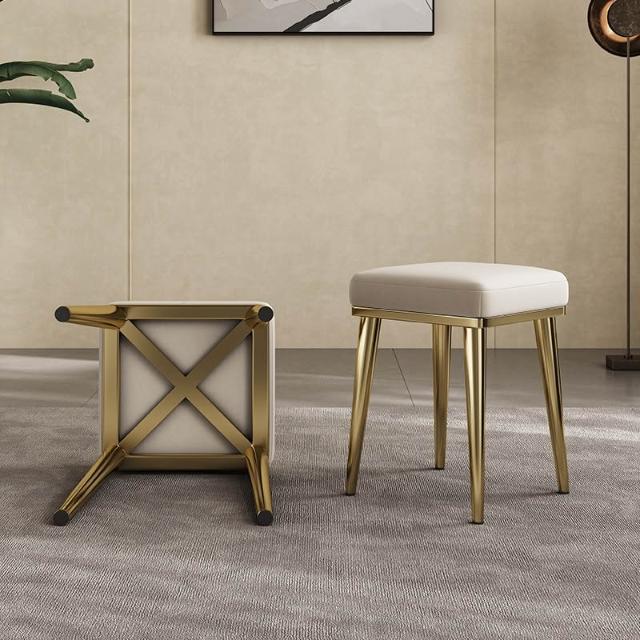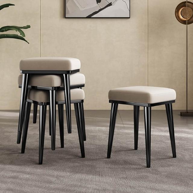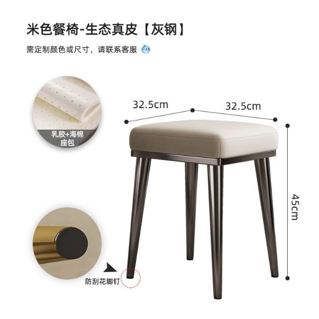 餐凳 凳子 軟包凳 輕奢真皮餐椅家用可疊放方凳餐桌備用凳子現代簡約不銹鋼牛皮椅子