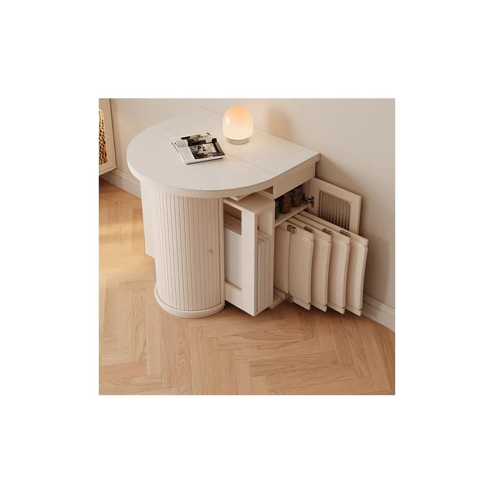 法式折疊餐桌椅 奶油風折疊餐桌椅 實木伸縮餐桌 家用小戶型岩板橢圓折疊餐桌椅 半圓桌飯桌 桌椅 折疊餐桌 小戶型餐桌