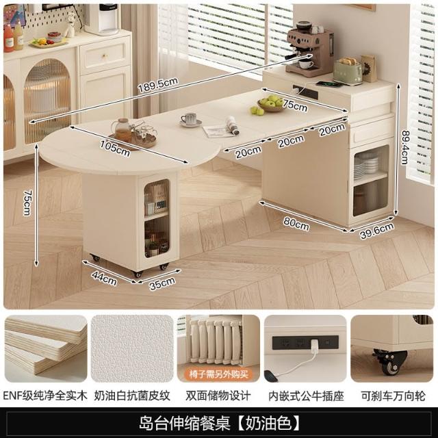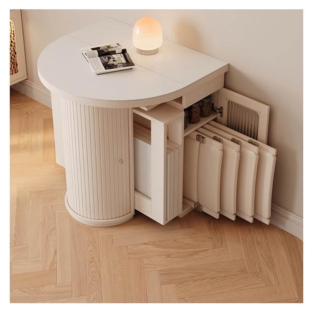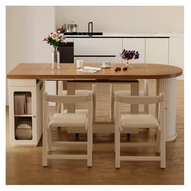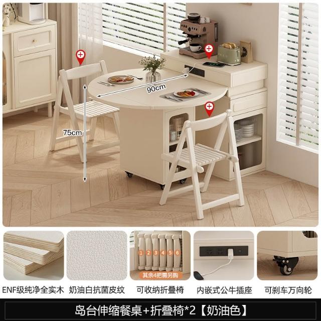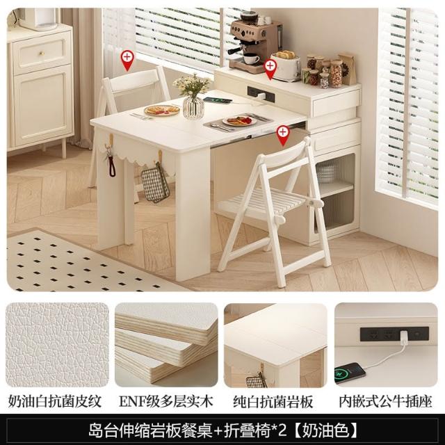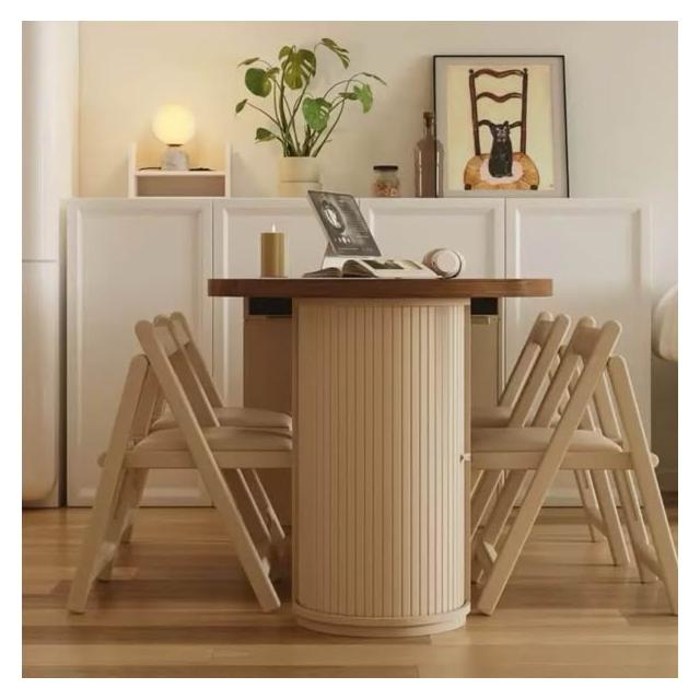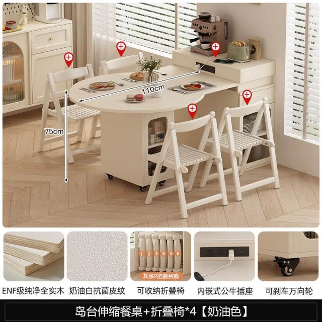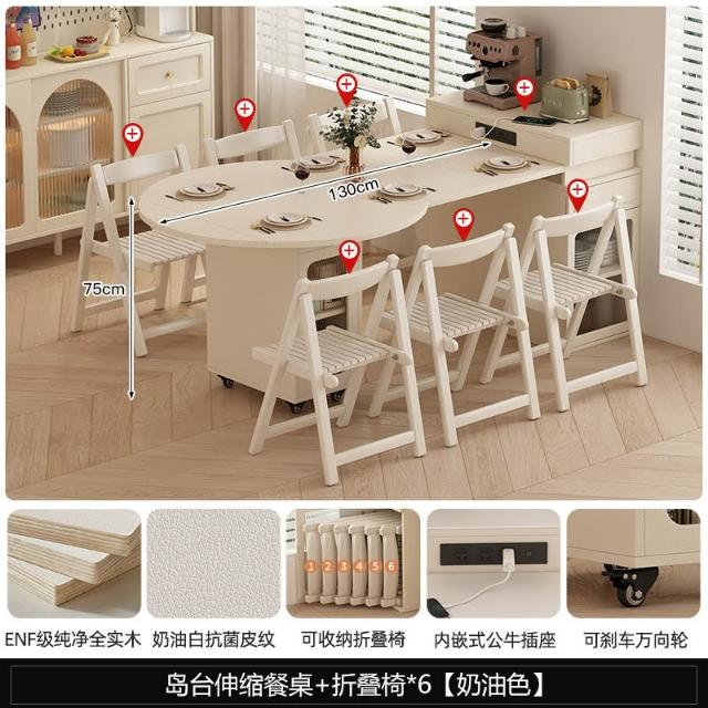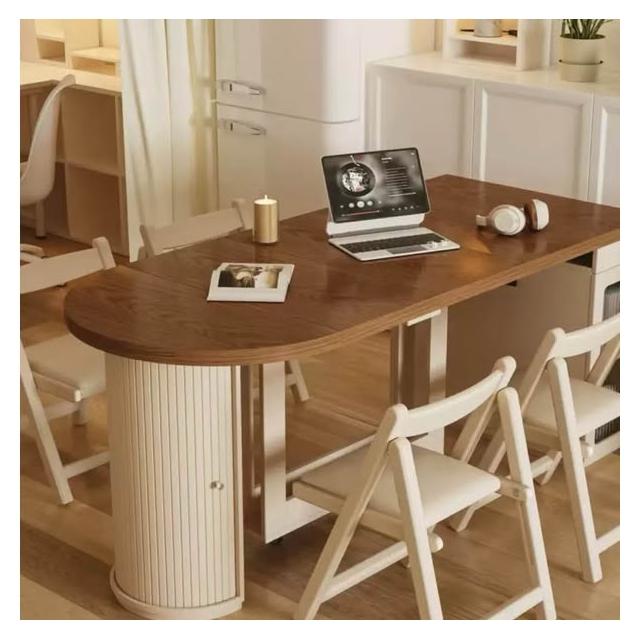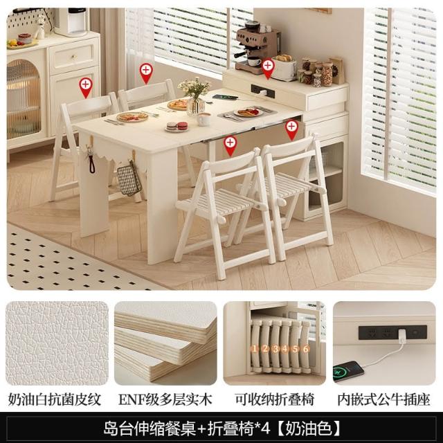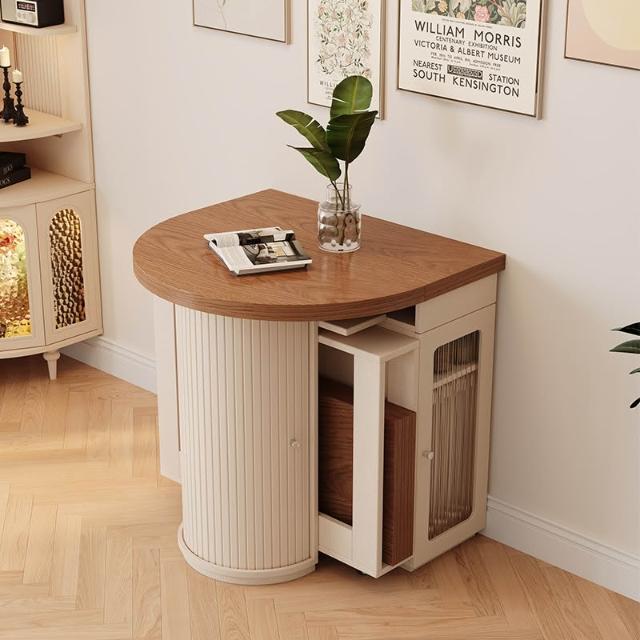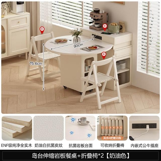 法式折疊餐桌椅 奶油風折疊餐桌椅 實木伸縮餐桌 家用小戶型岩板橢圓折疊餐桌椅 半圓桌飯桌 桌椅 折疊餐桌 小戶型餐桌