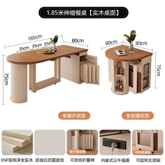 法式折疊餐桌椅 奶油風折疊餐桌椅 實木伸縮餐桌 家用小戶型岩板橢圓折疊餐桌椅 半圓桌飯桌 桌椅 折疊餐桌 小戶型餐桌