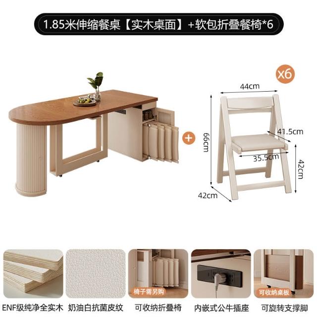 法式折疊餐桌椅 奶油風折疊餐桌椅 實木伸縮餐桌 家用小戶型岩板橢圓折疊餐桌椅 半圓桌飯桌 桌椅 折疊餐桌 小戶型餐桌
