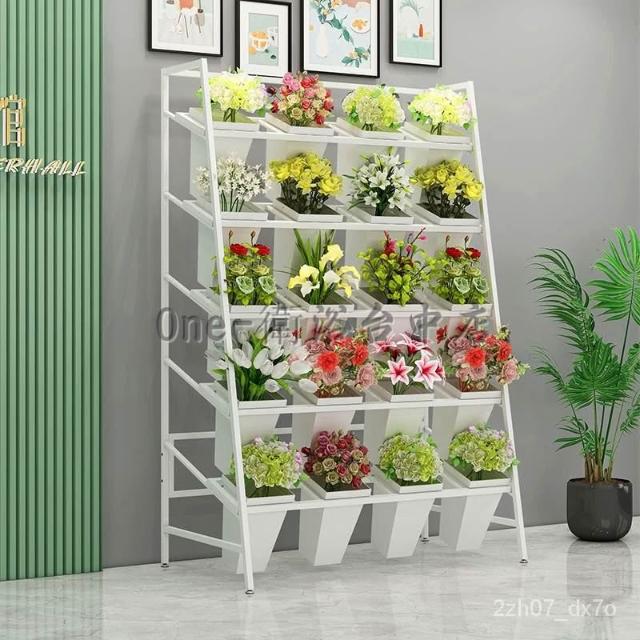 免運 可開發票 花店花架 鮮花展示架 鐵藝梯形多層擺放架 室內醒花桶置物架子 花卉架 落地陽臺掛式花盆架 花架 多功能架