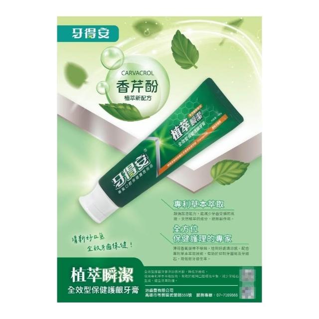 牙得安 植萃瞬潔 牙膏 140g 保健護齦 長效舒緩抗敏 全效綻白