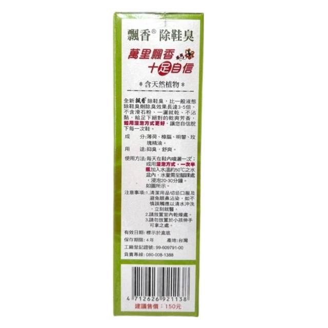 (6入)飄香 除鞋臭 80g 除臭鞋粉 天然植物成分