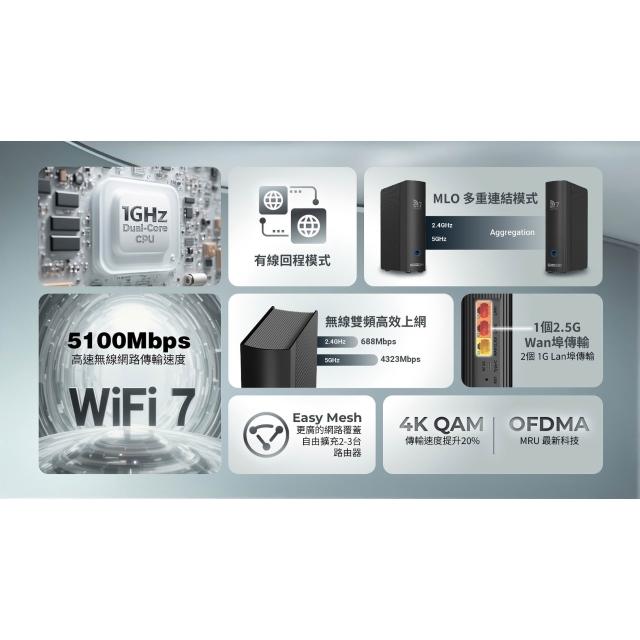 TOTOLINK BE5 BE5100 Mesh網狀路由器 Wi-Fi7 無線網路分享器 Easy Mesh