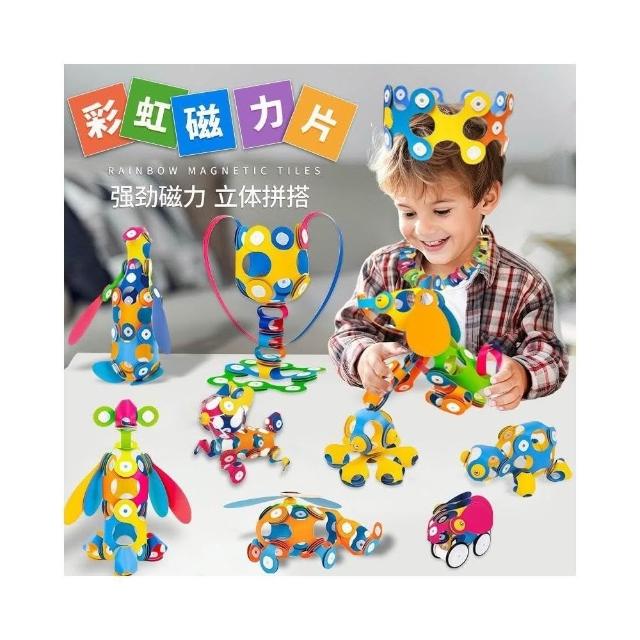 彩虹磁力片兒童益智百變拼搭3d立體磁力軟積木智力開發磁力貼玩具