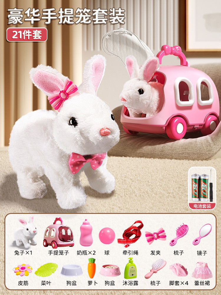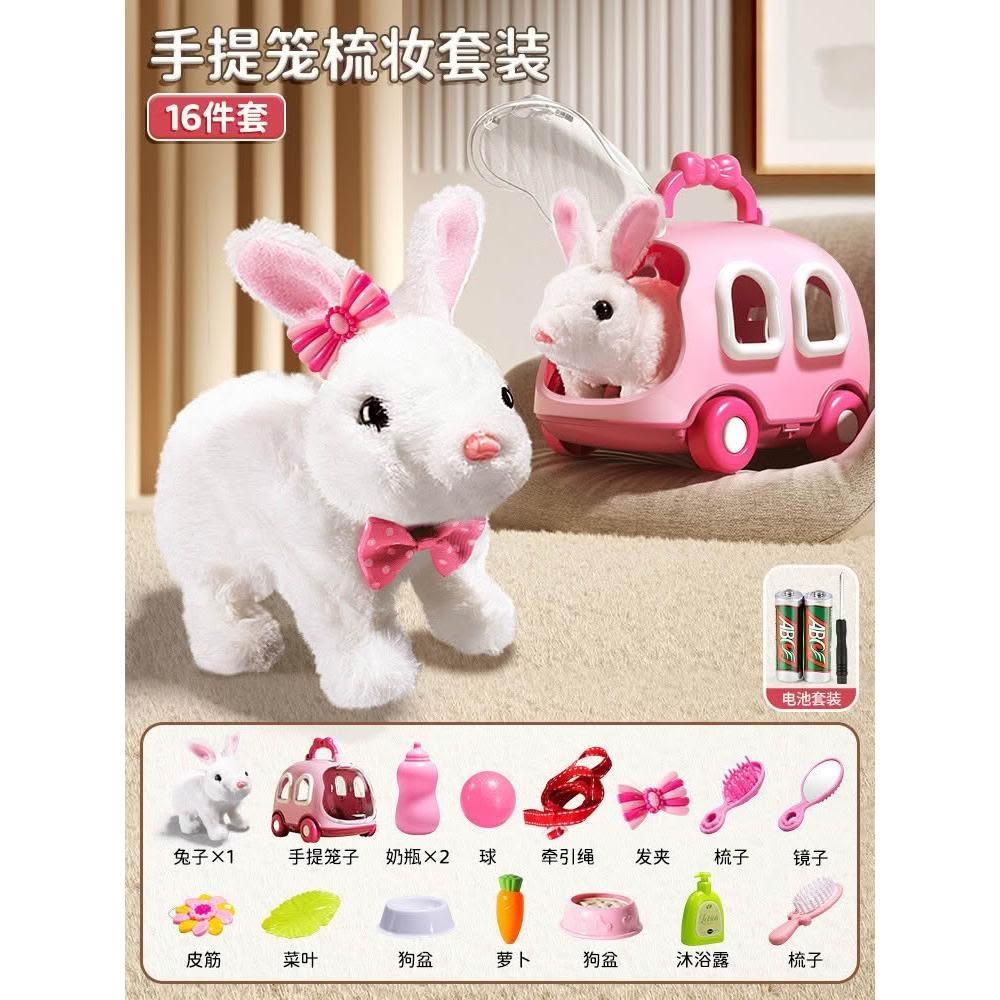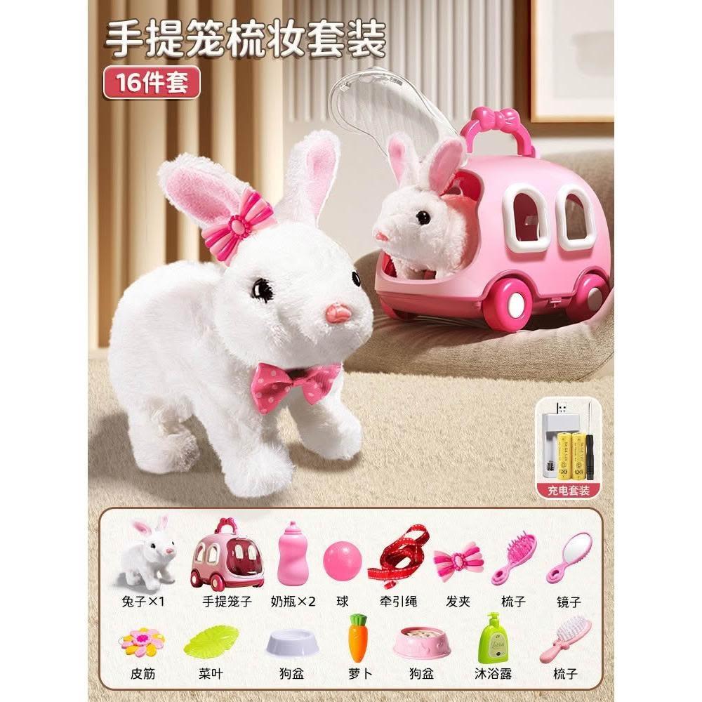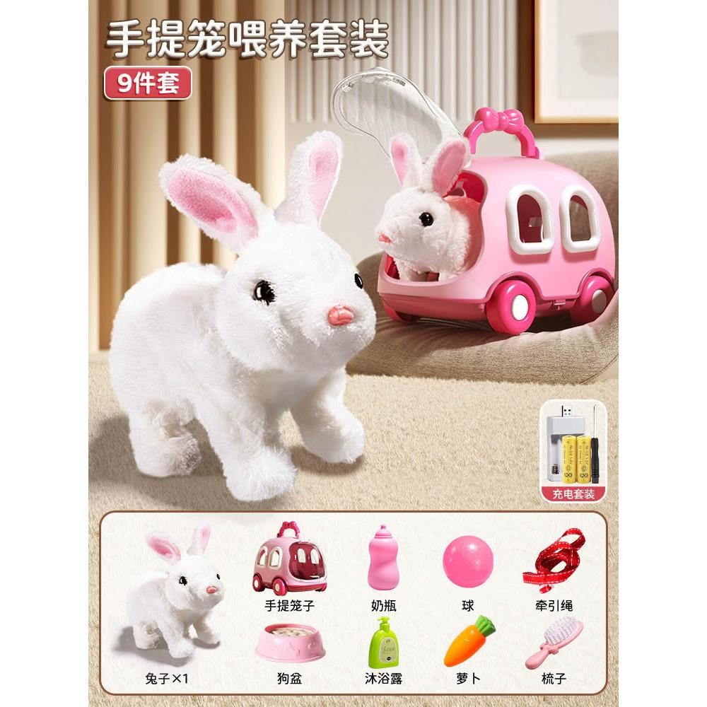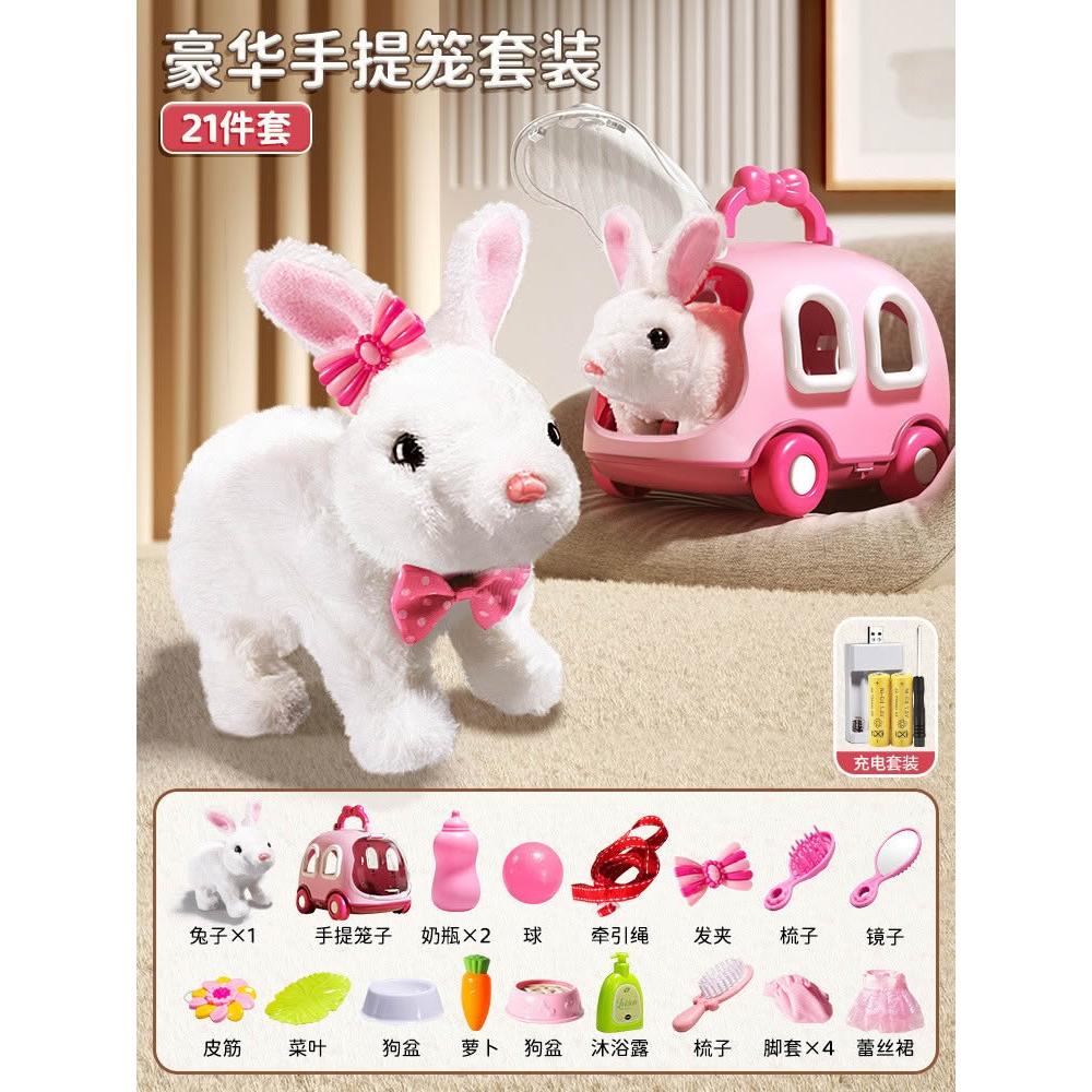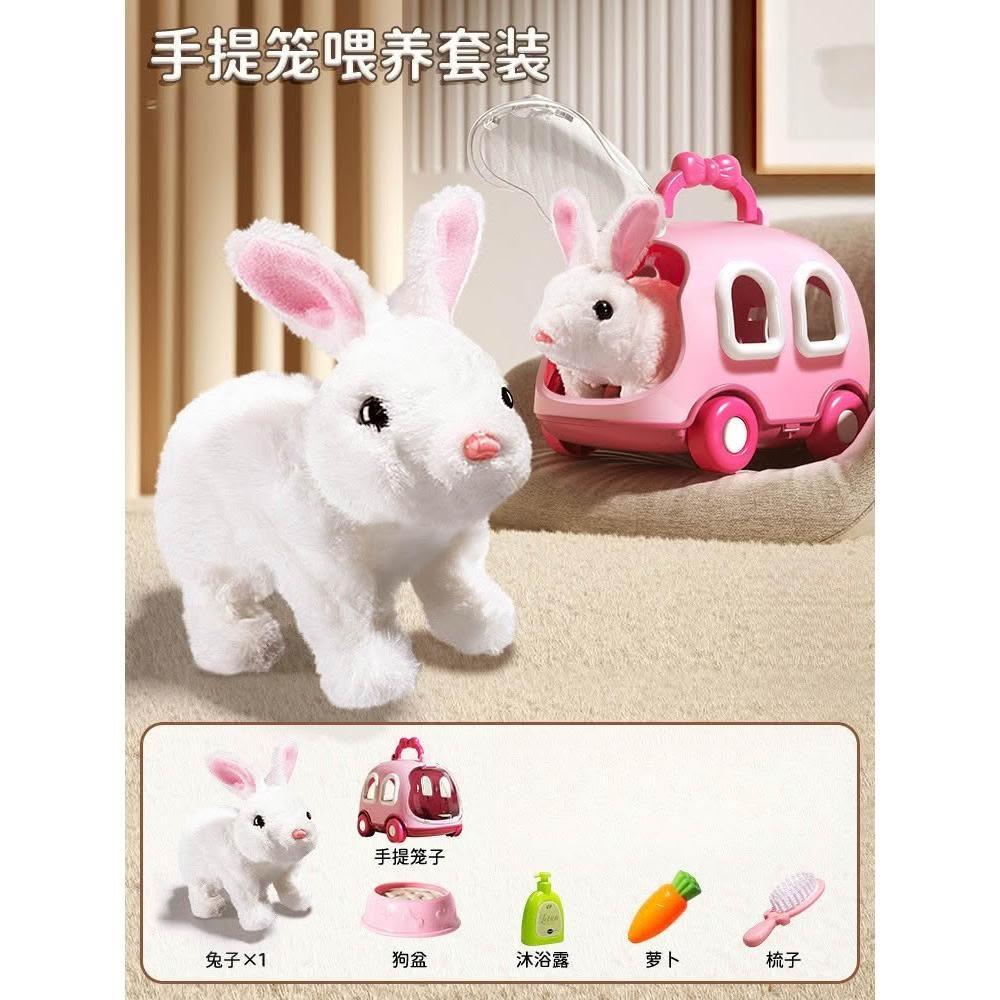 兒童電動仿真小兔子毛絨玩具女孩寵物小白兔玩偶公仔女生生日禮物